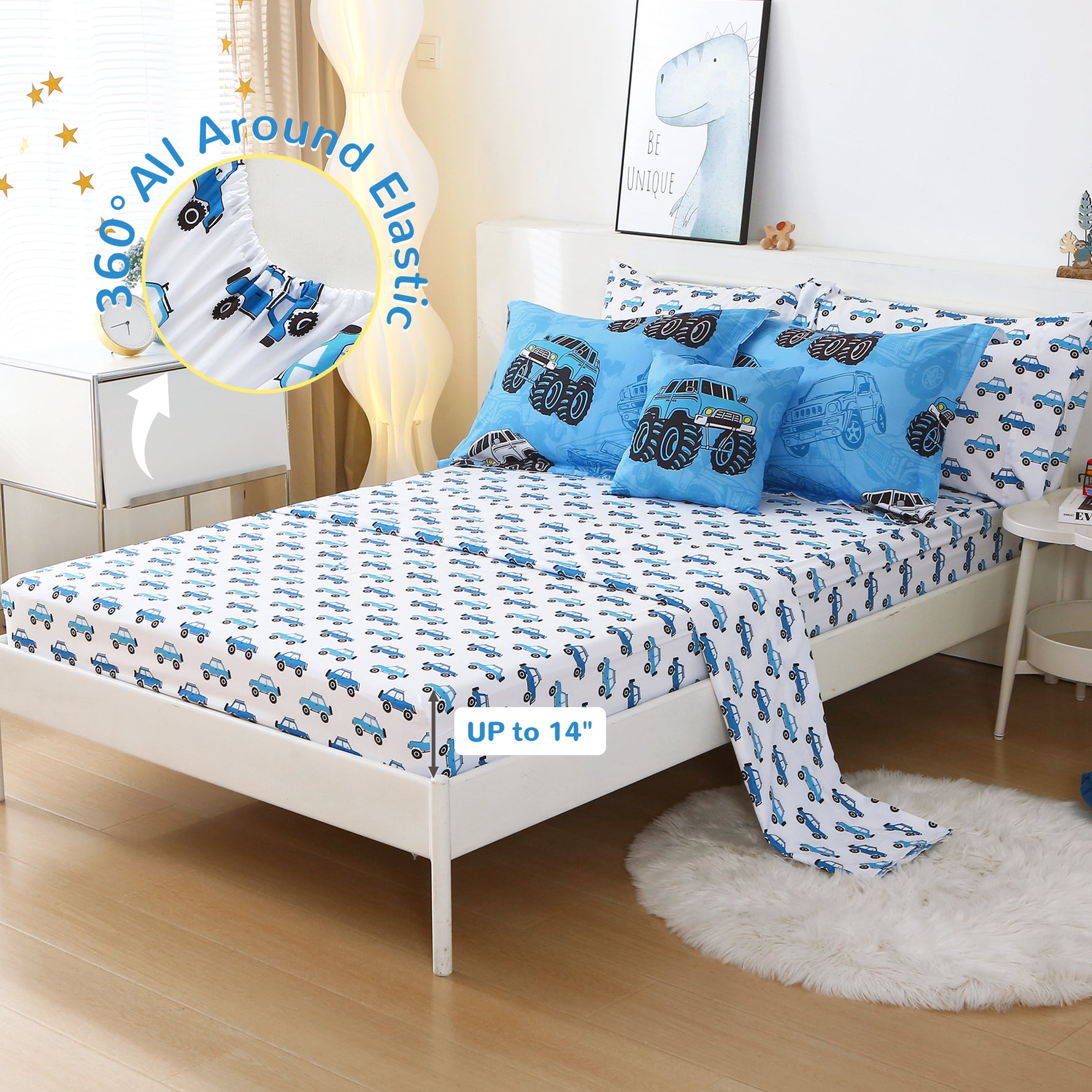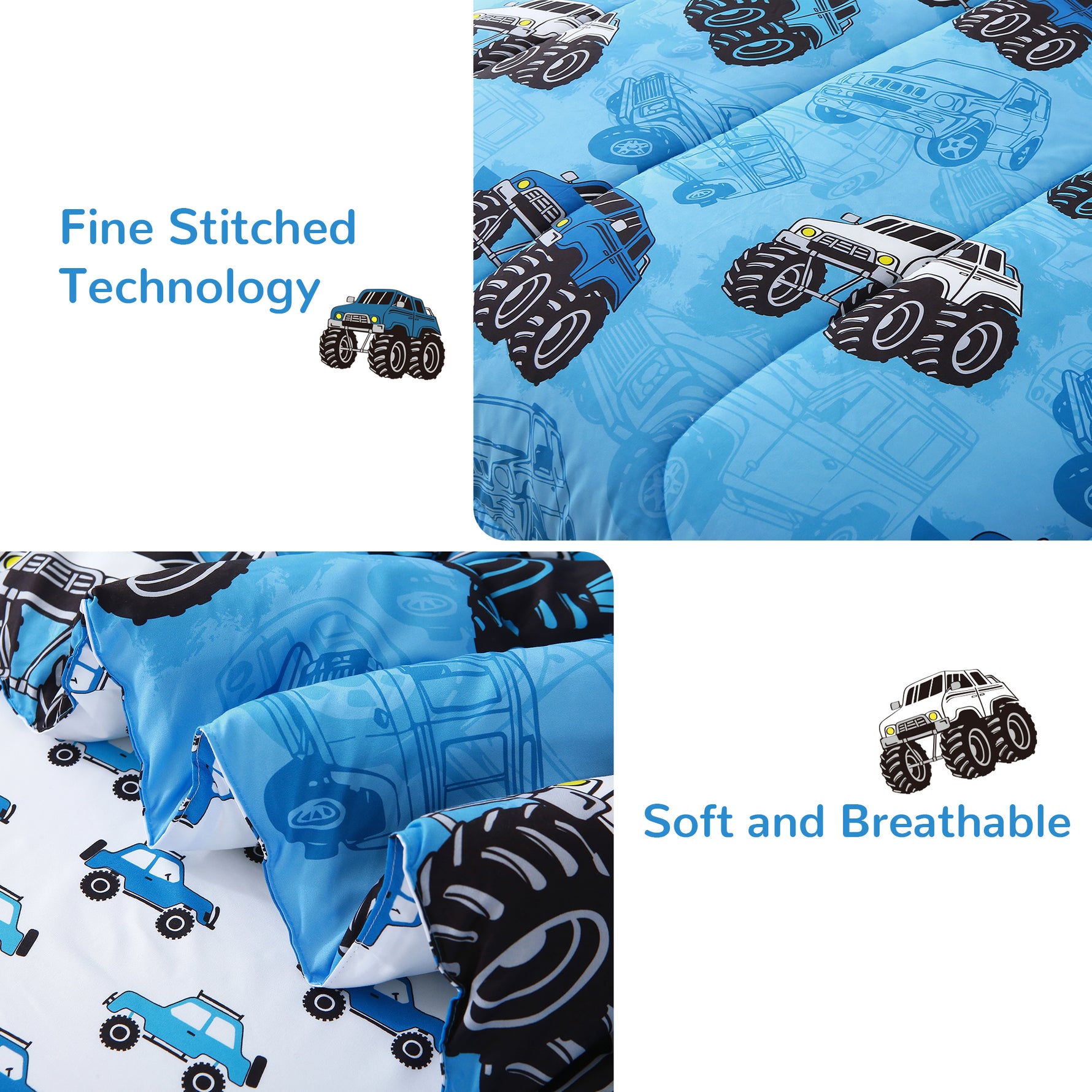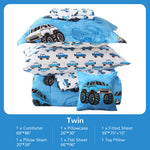 - DURABLE & EASY CARE: The comforter set with sheets for boys design keeps it fits body effectively. Aesthetic stitching and premium piped edges will keep comforter from shifting and edge breakage, even after many washes in order to keep you feel more comfortable. Machine washable. Gentle cycle with cold water. Tumble dry low or air dry. Do not bleach