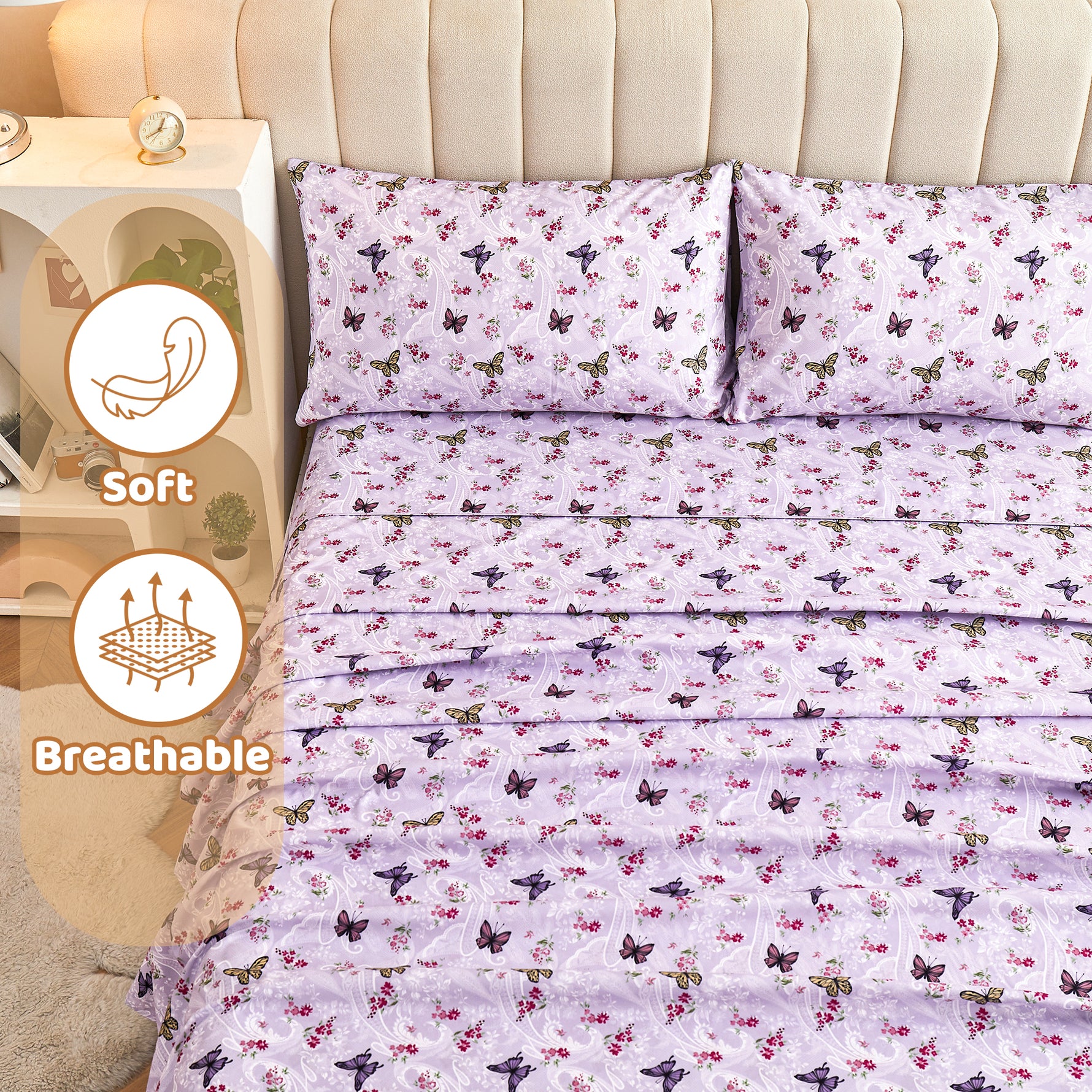 - Comfy Patterned Microfiber Sheet Sets: The printed sheet set with advanced fabric and great sewing stitch not only makes the double bed sheets smooth and durable but also wick moisture away with great breathability