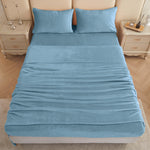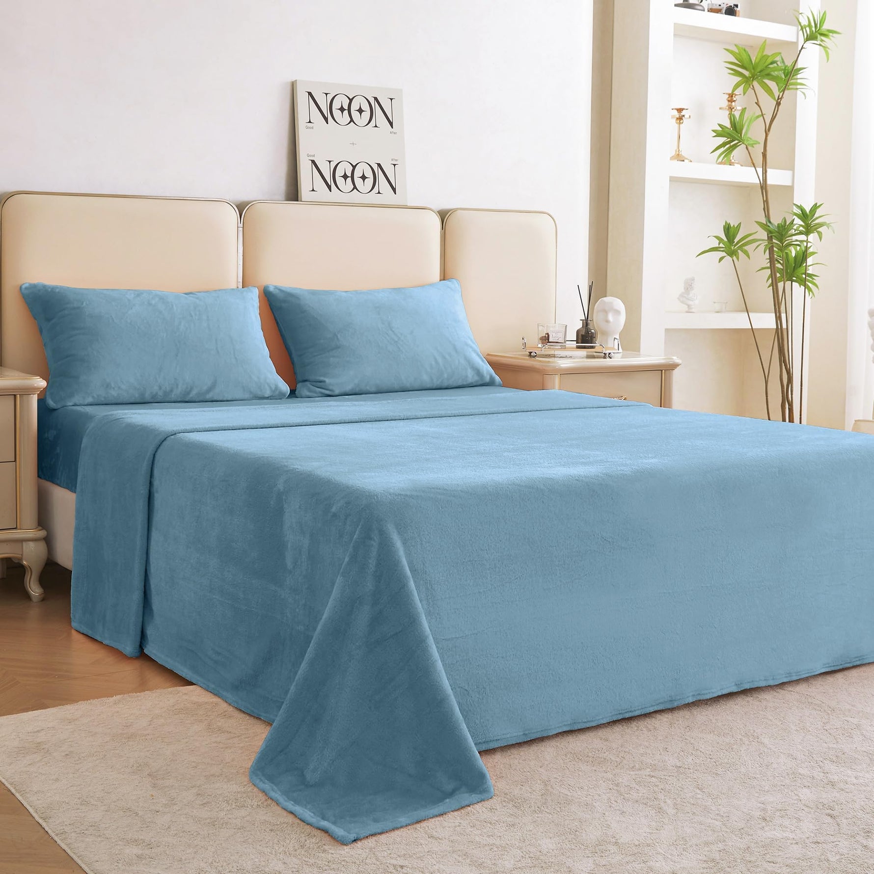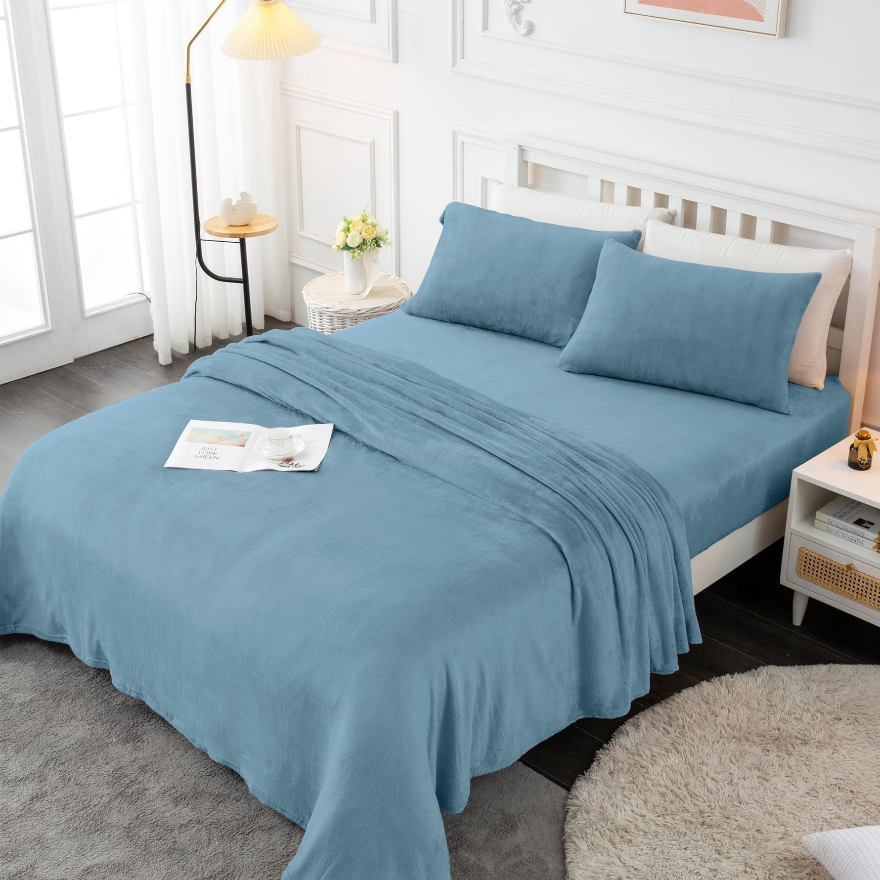 Light Blue Printed Micro Fleece Bed Sheet Set