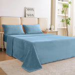 Covers four sizes (twin/full/queen/king) with 3-piece or 4-piece sets, including a fitted sheet, flat sheet, and pillowcases. The 15-inch deep-pocket fitted sheet features all-around elastic, fitting the mattress perfectly without slipping, ensuring a restful sleep.