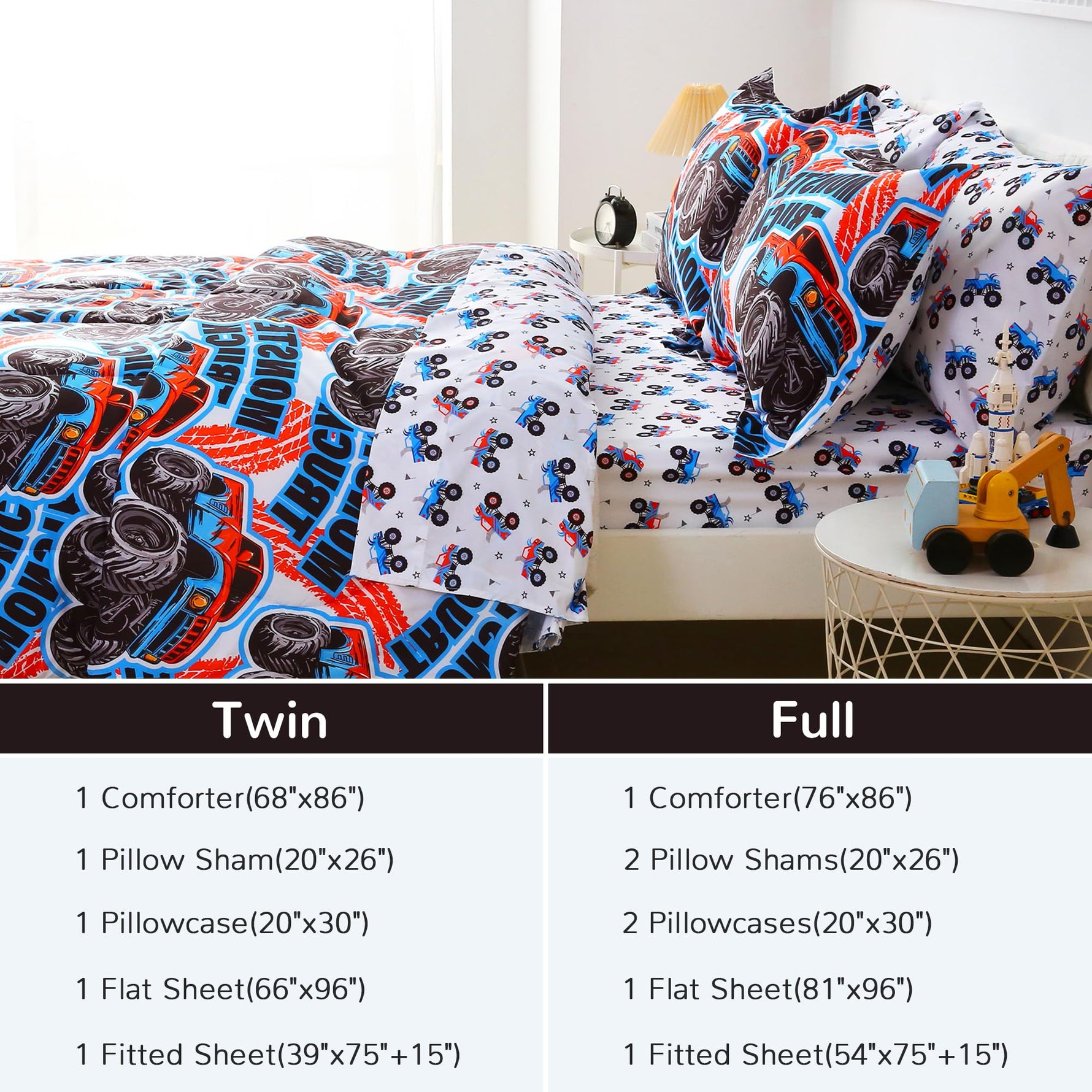 Unit price perPerfect for Kids: Our twin bedding sets include a soft 1 comforter (68"x86"), 1 flat sheet (66"x96"), 1 fitted sheet (39"x75"+15"), 1 pillowcase (20"x30") and 1 pillow sham (20"x26") – 5 pieces twin comforter set with sheets for girls.Our full bedding sets include a soft 1 comforter (76"x86"), 1 flat sheet (81"x96"), 1 fitted sheet (54"x75"+15"), 2 pillowcases (20"x30") and 2 pillow shams (20"x26"+2") – 7 pieces full comforter set with sheets for girls
