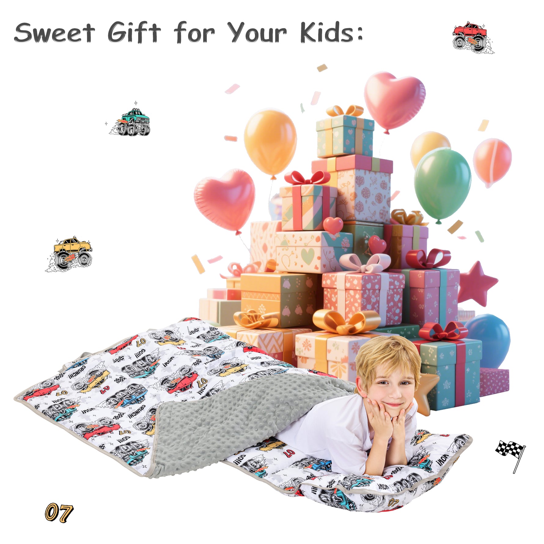 Monster Truck Toddler Nap Mat with Pillow and Blanket