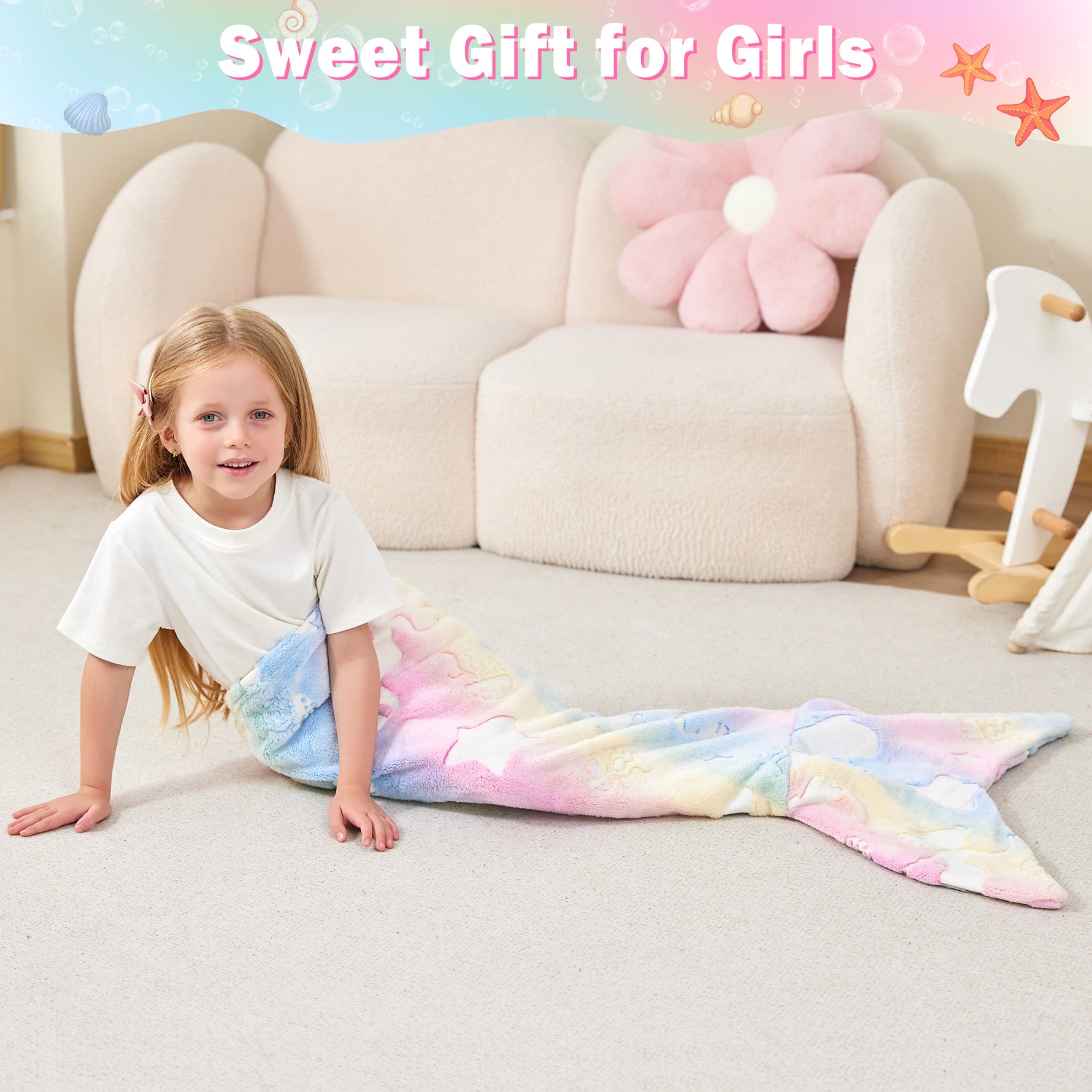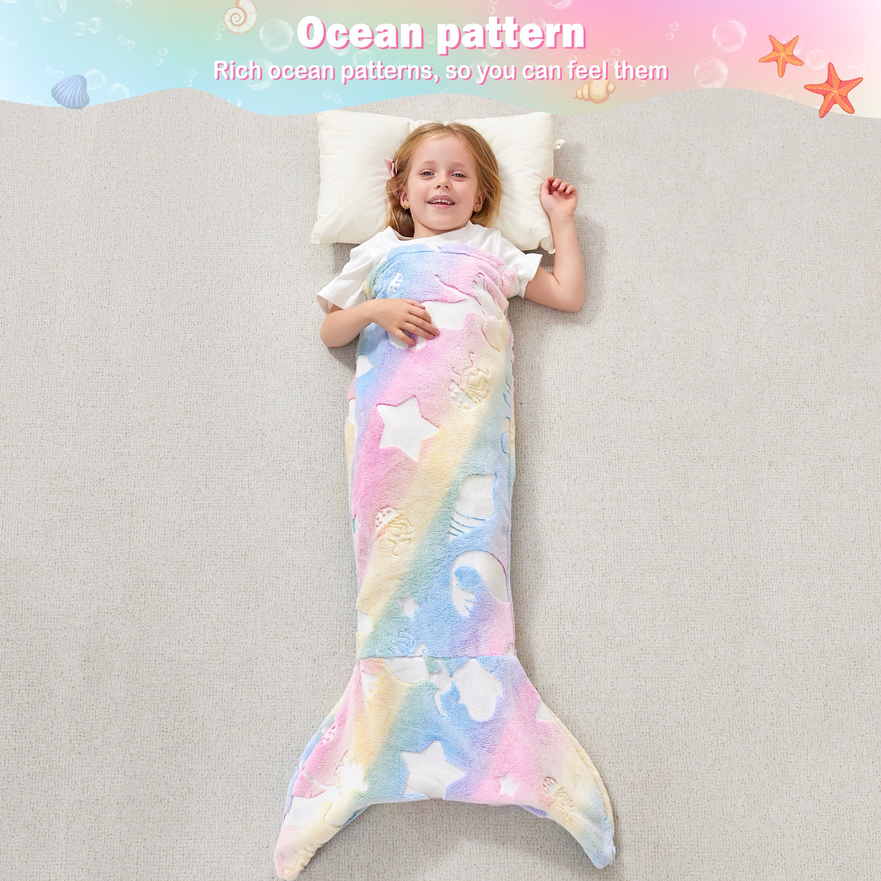 - 【Super soft flannel fabric】 Glow Mermaid Tails are soft cozy breathable and skin-friendly. The mermaid blanket for kids is the coziest cover that can be used during all seasons!