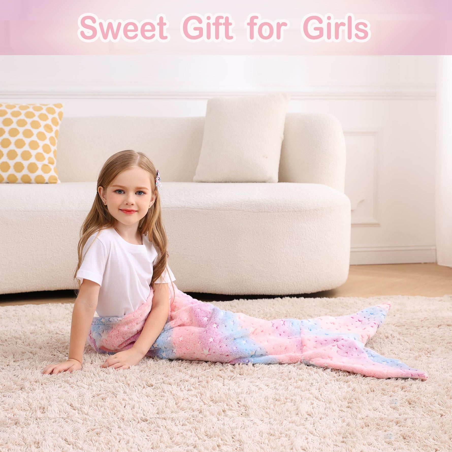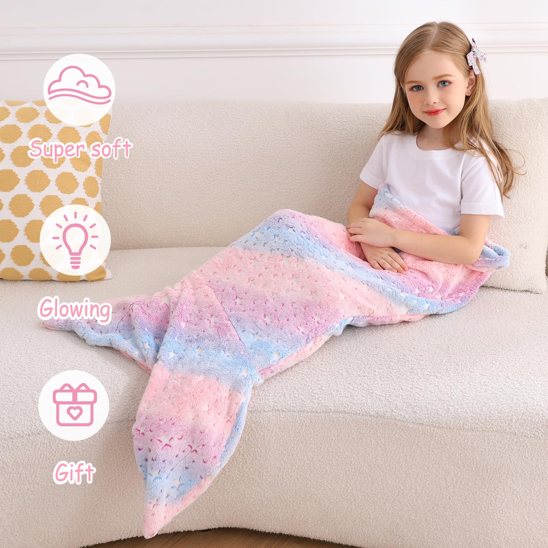 - 【Super soft flannel fabric】 Glow Mermaid Tails are soft cozy breathable and skin-friendly. The mermaid blanket for kids is the coziest cover that can be used during all seasons!