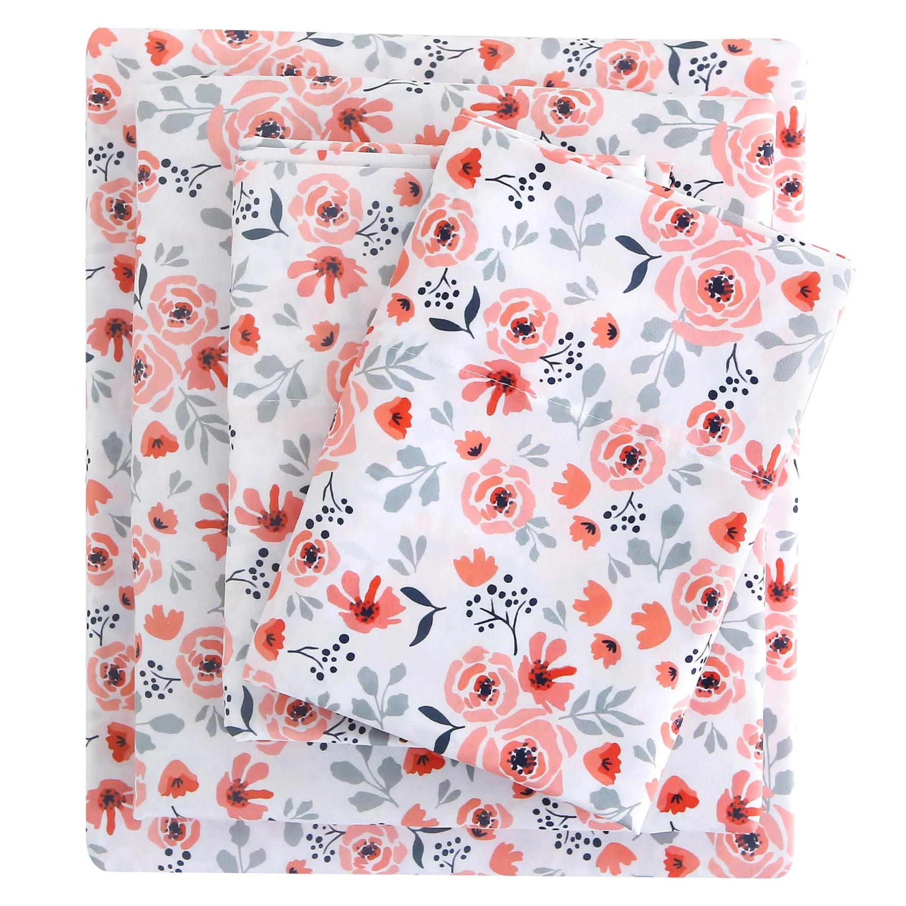 Our 4-piece floral printed vintage twin size single bed sheet set includes: