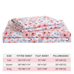 These deep-pocket printed sheets are suitable for all ages and all seasons. The microfiber bedding sheets and pillowcases offer an elegant feel and comfortable texture to enhance the sleeping experience.