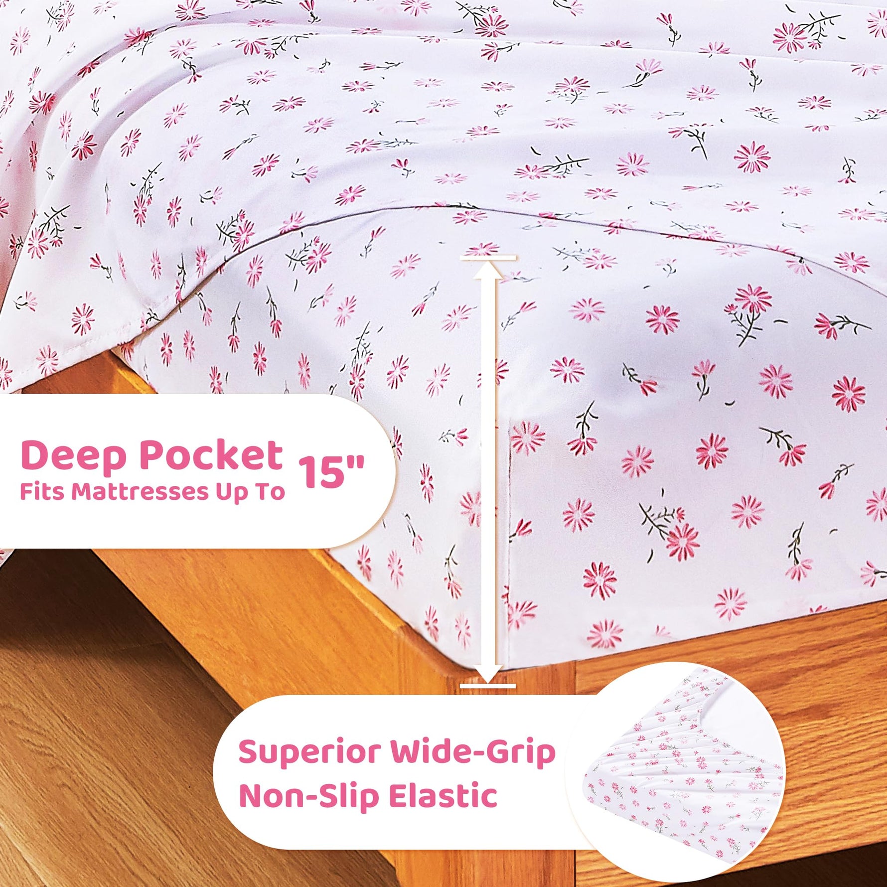 These deep-pocket printed sheets are suitable for all ages and all seasons. The microfiber bedding sheets and pillowcases offer an elegant feel and comfortable texture to enhance the sleeping experience.