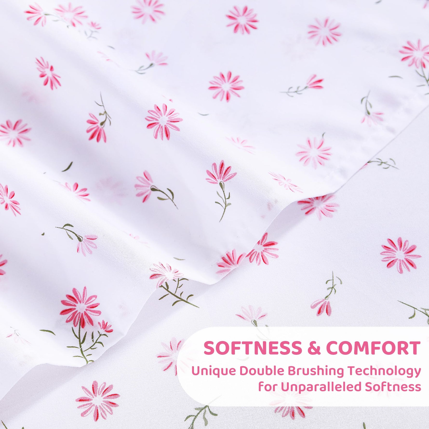 Pink Daisy Patterned Bed Sheets Set