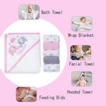 Pink Elephant Baby Hooded Towel and Washcloth Set 6-Pack Size 30 x 26 Inch