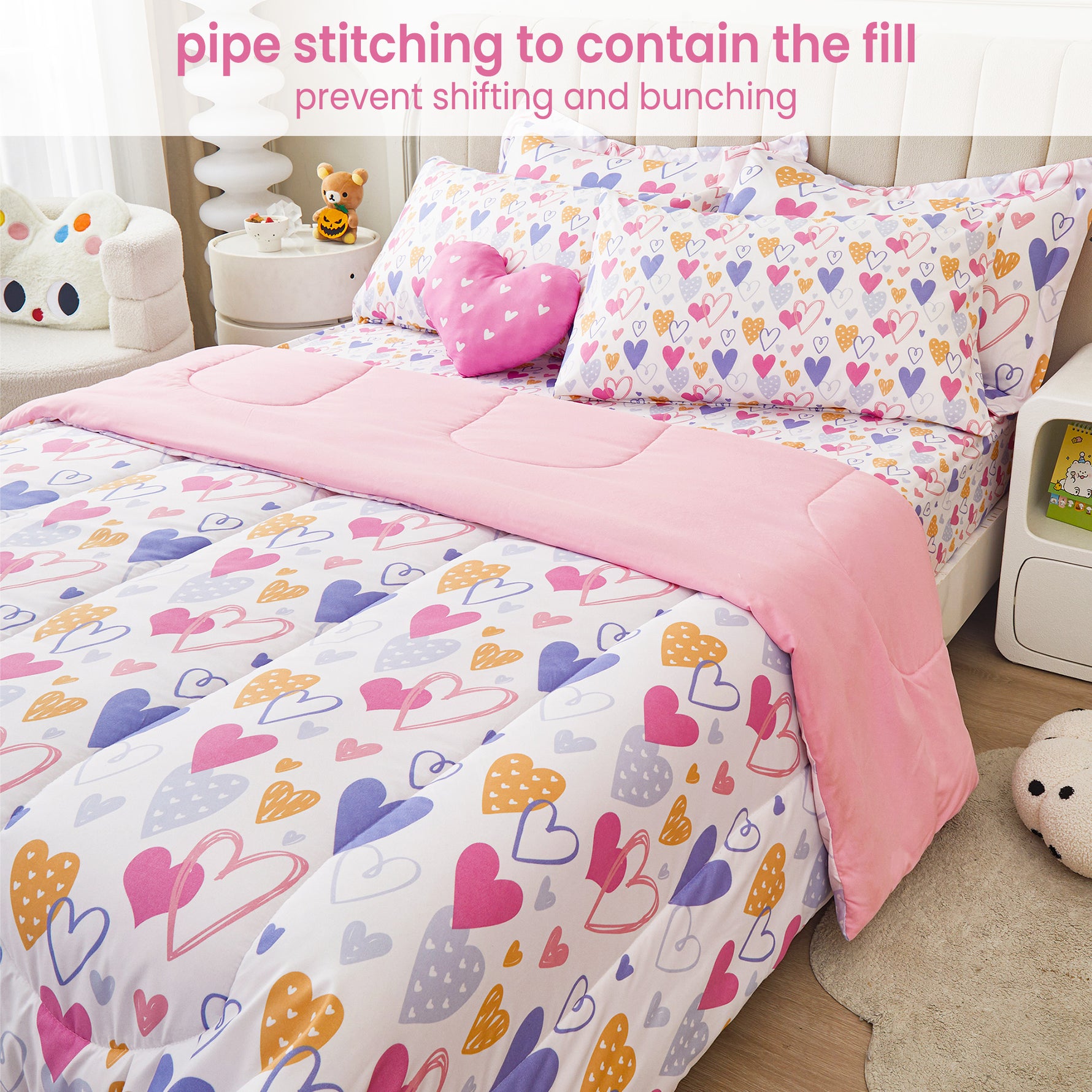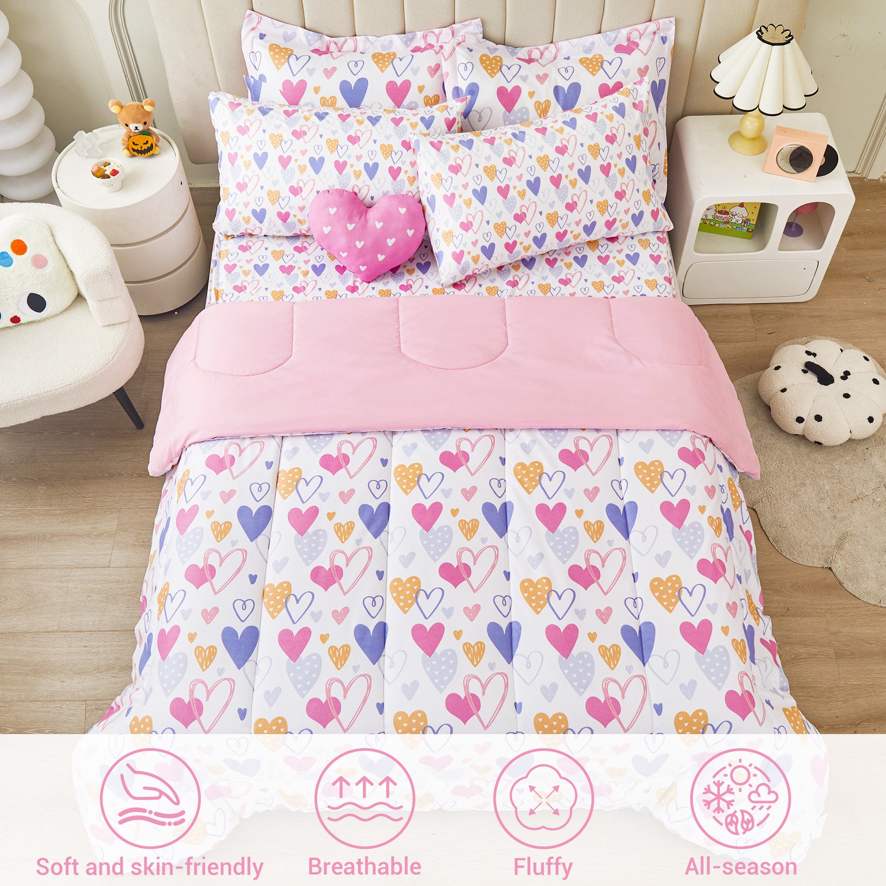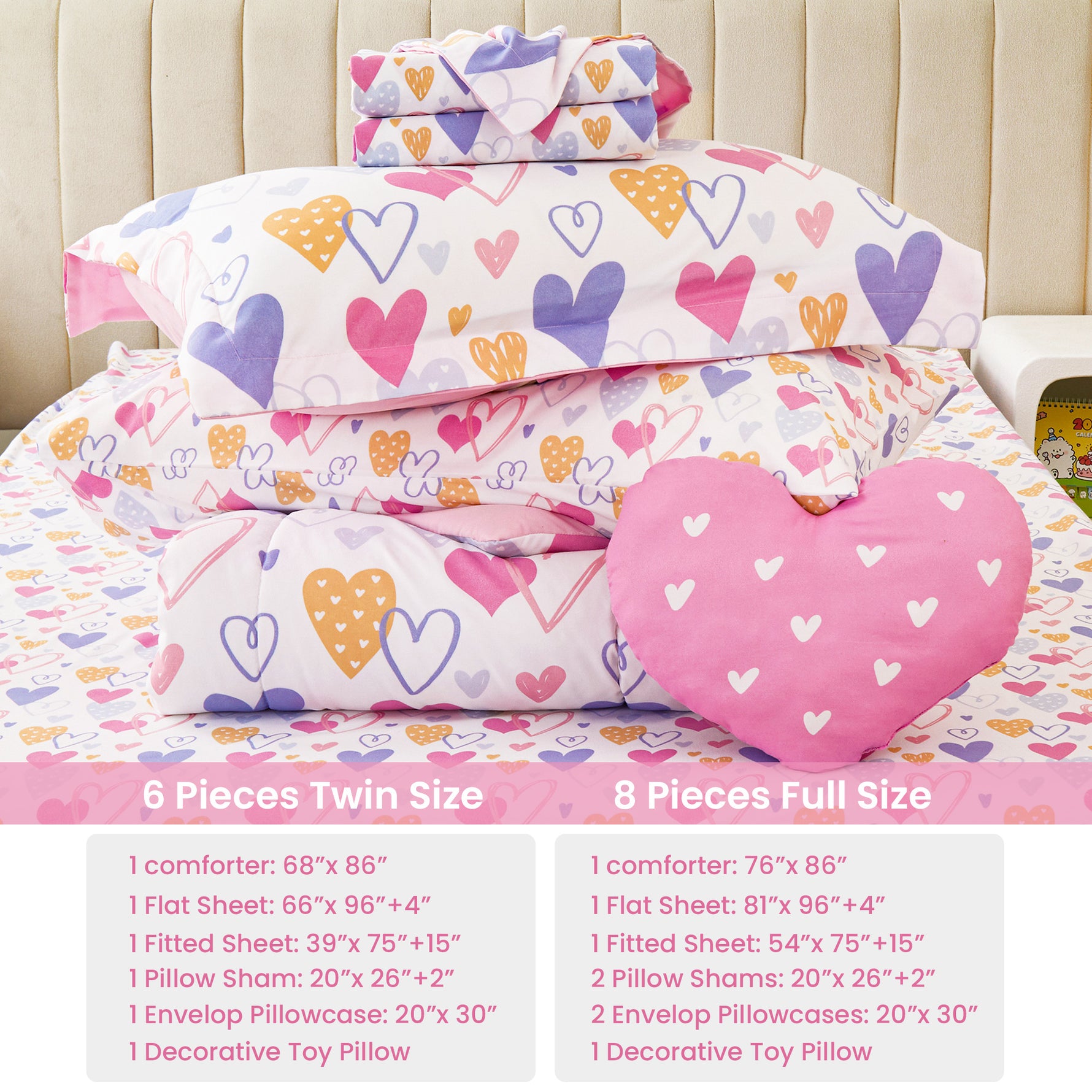 Pink Heart 6/8 Pcs Comforter Sets for Girls Kids