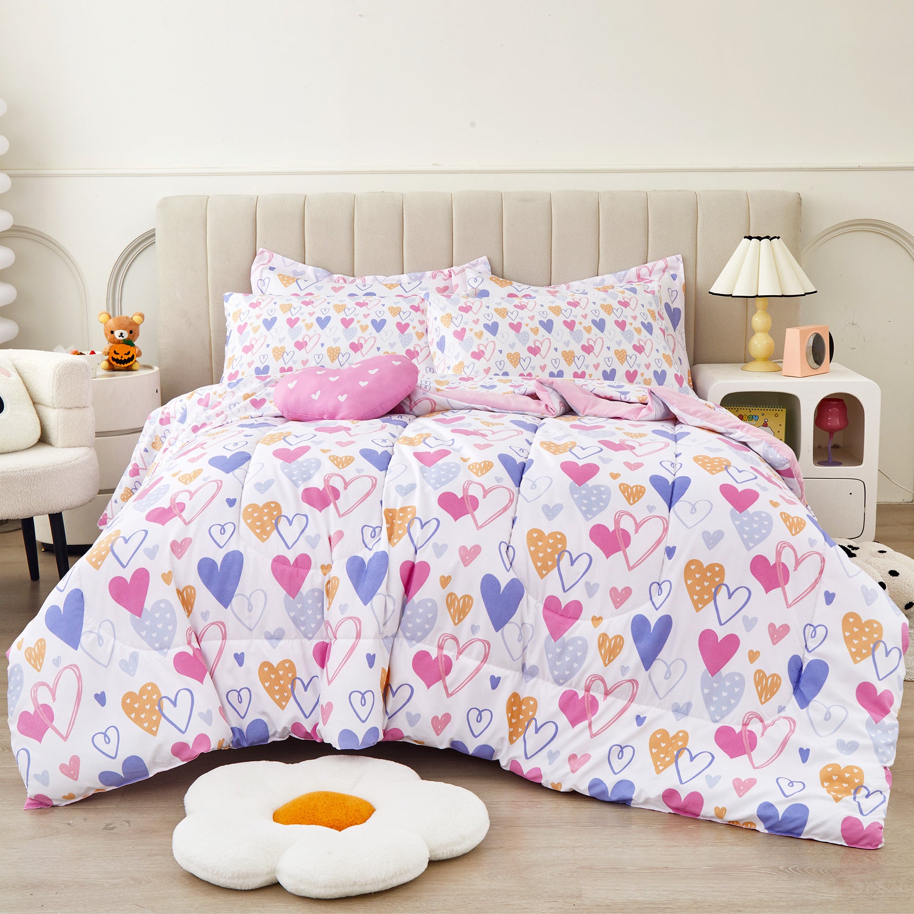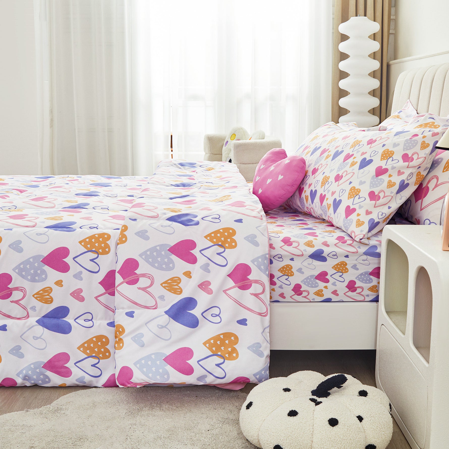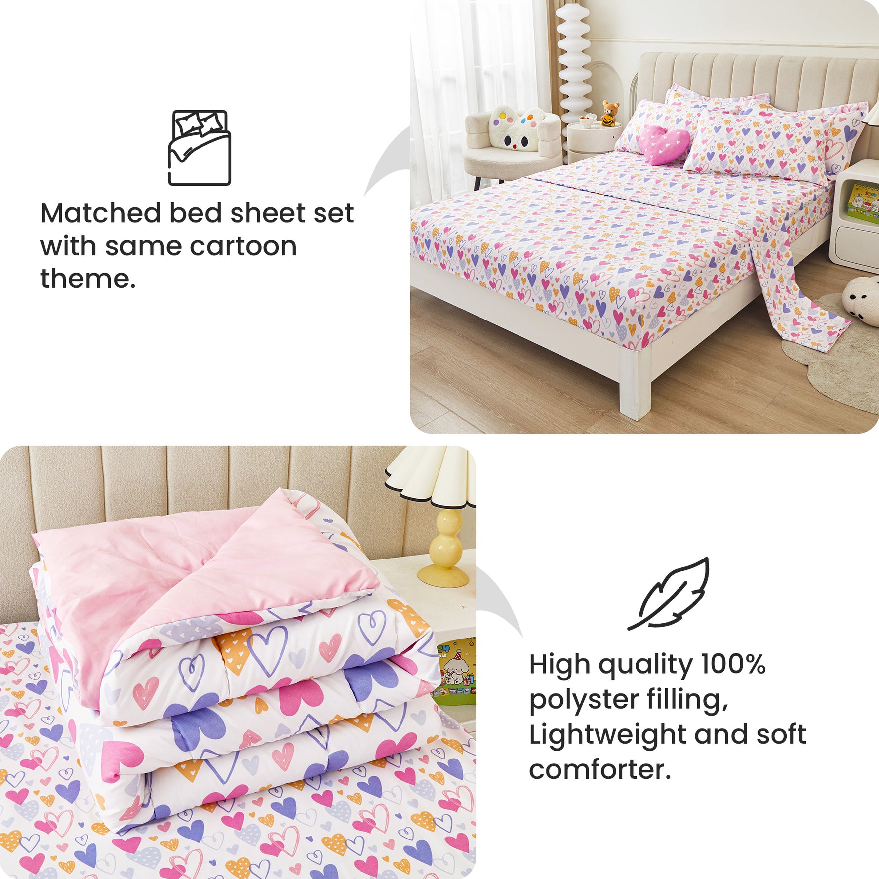 Pink Heart 6/8 Pcs Comforter Sets for Girls Kids