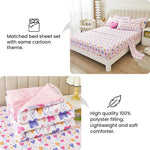 - 6 Pcs Girls Twin Bedding Set: Includes 1 comforter (68"x86"), 1 flat sheet (66"x96"+4"), 1 fitted sheet (39"x75"+15"), 1 envelop pillowcase (20"x30"), 1 pillow sham (20"x26"+2") and 1 decorative toy pillow.