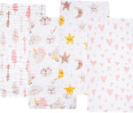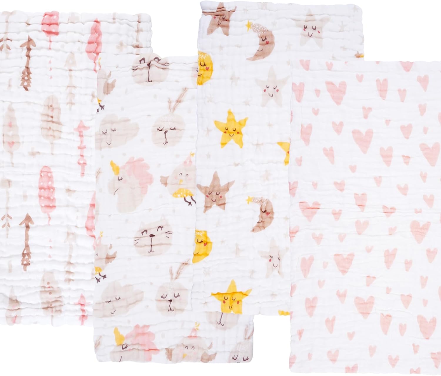 Pink Heart Baby Muslin Burp Cloths 10" x 20" 4 Pack