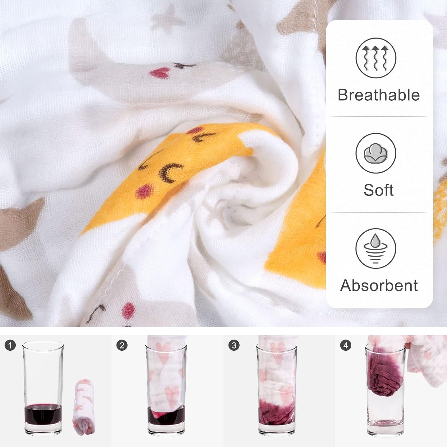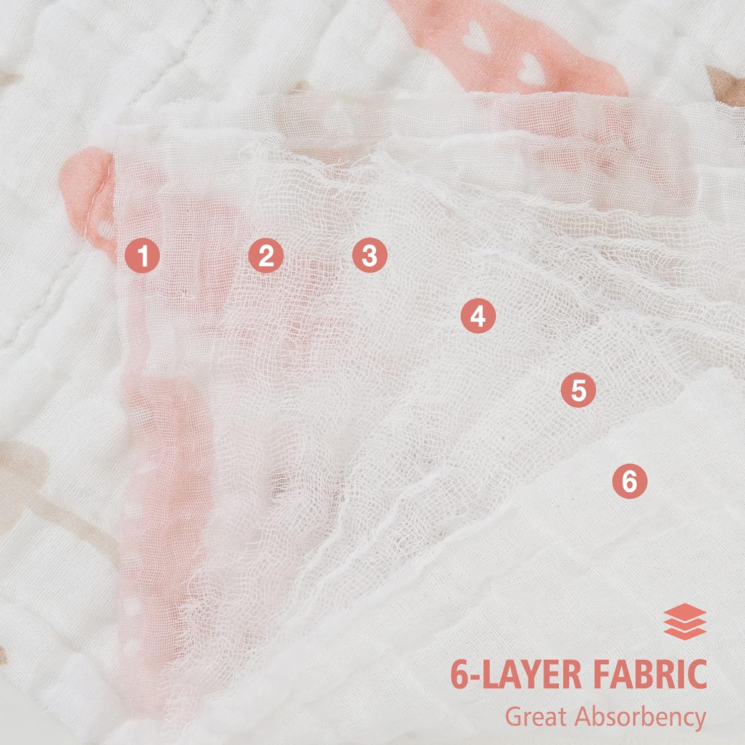 Strong Absorption: Viviland baby muslin burp cloths and washcloths have 6 layers of cotton keeping kids' cloths and skin dry from shedding, teething, and drooling.
