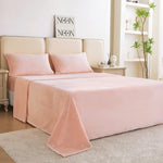 Covers four sizes (twin/full/queen/king) with 3-piece or 4-piece sets, including a fitted sheet, flat sheet, and pillowcases. The 15-inch deep-pocket fitted sheet features all-around elastic, fitting the mattress perfectly without slipping, ensuring a restful sleep.