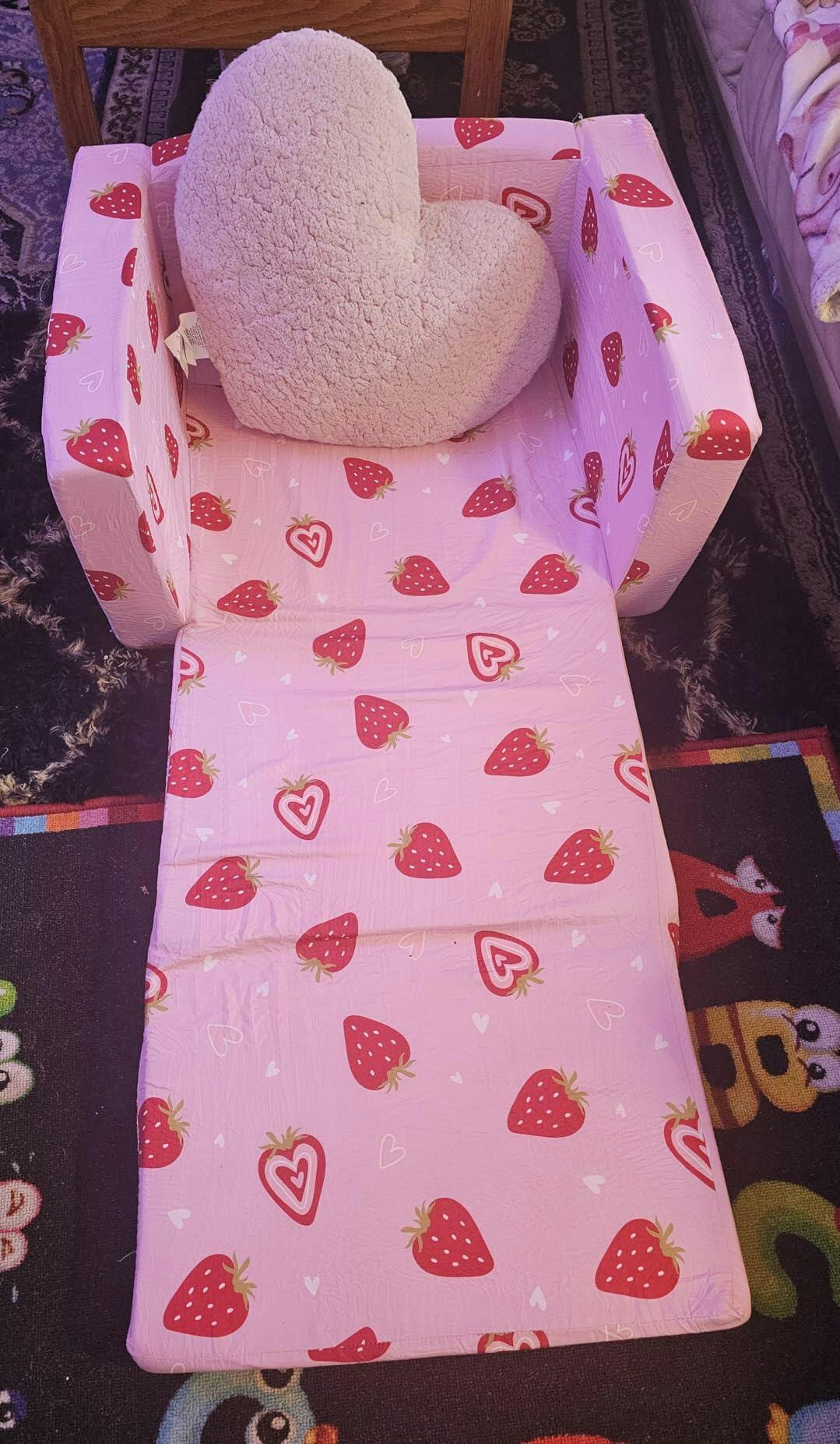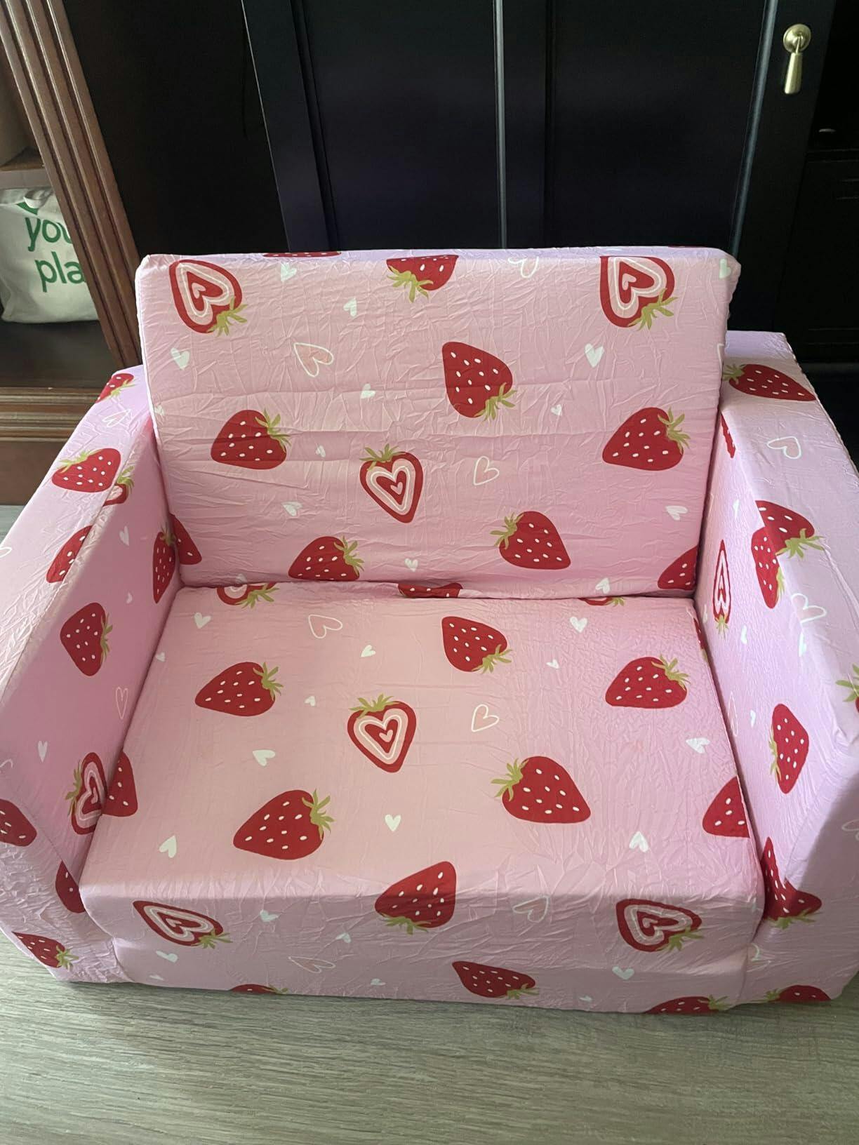 Pink Strawberry 2-in-1 Kids Sofa for Toddler Convertible Sofa to Lounger Bed