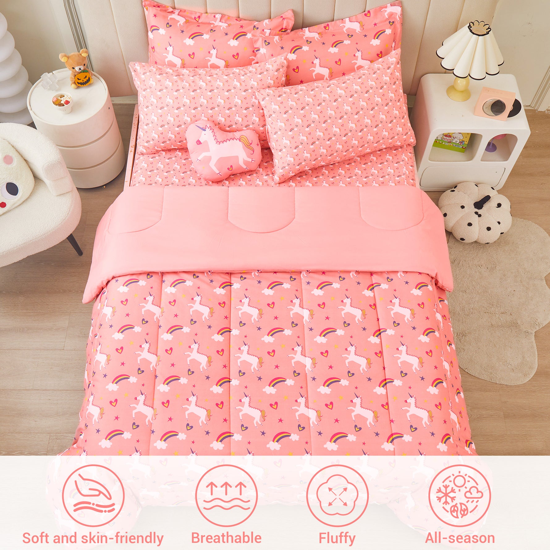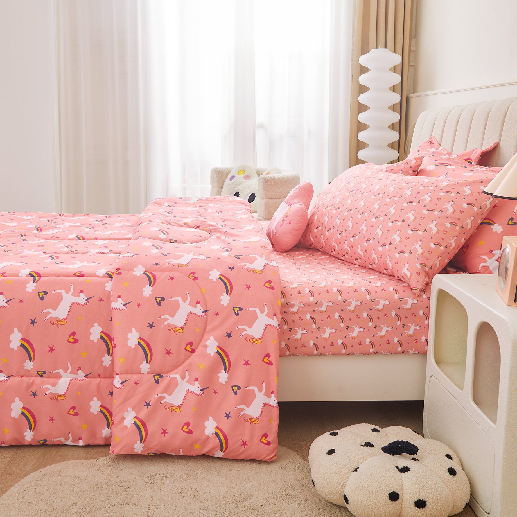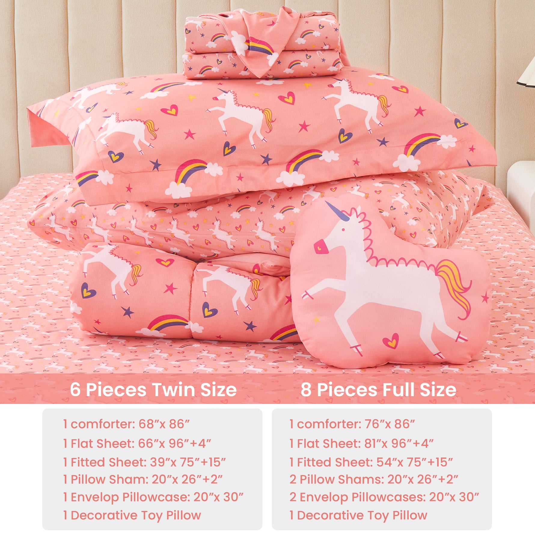 Pink Unicorn Rainbow 6/8 Pcs Comforter Sets for Girls Kids