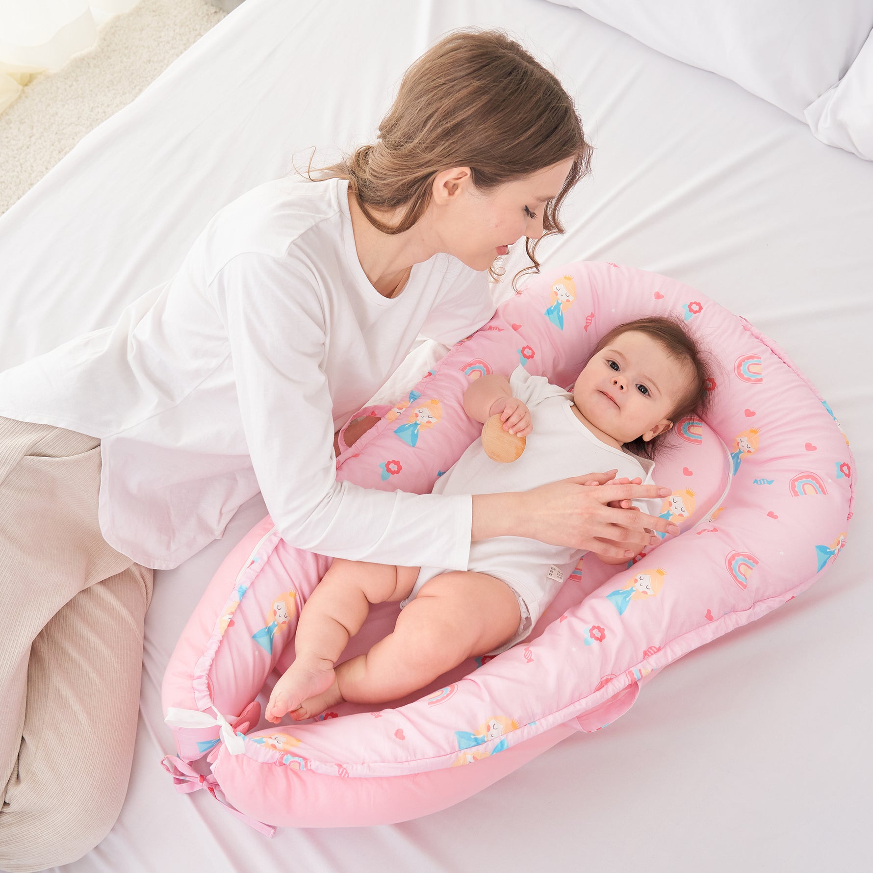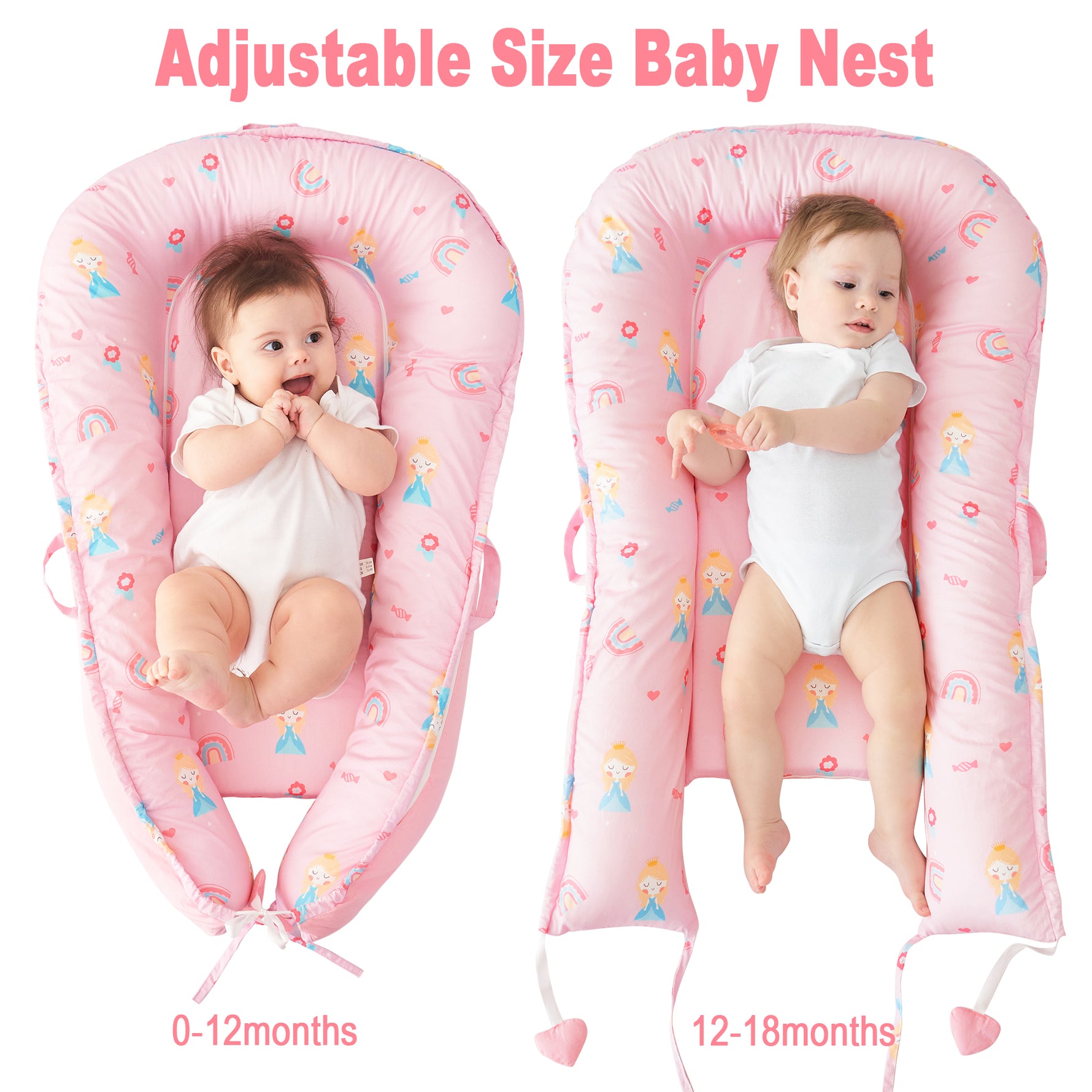 Princess Baby Lounger - Baby Nest Co Sleeper for Baby Bed, Soft & Breathable Portable Cotton Newborn Lounger Nest for Crib Bassinet