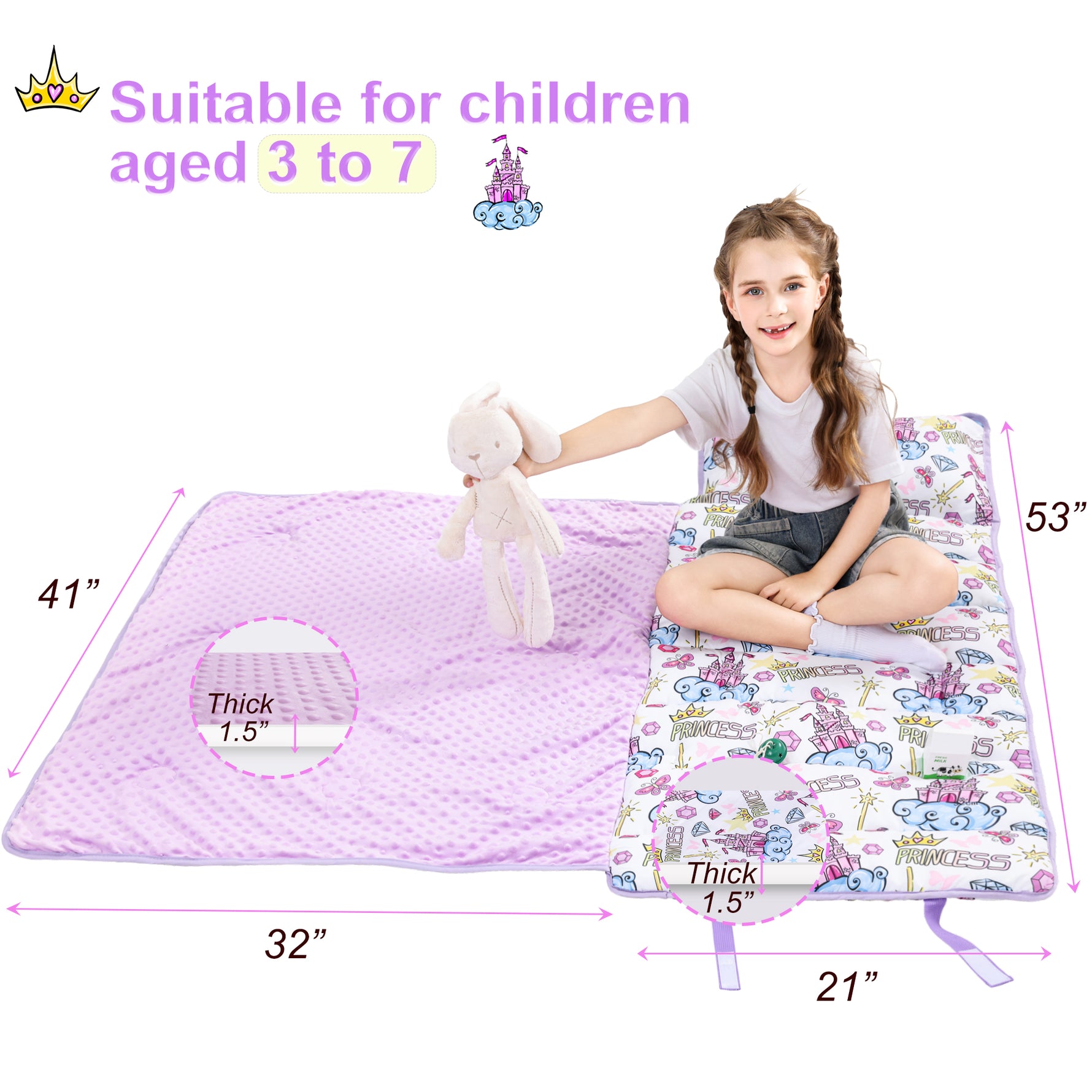 - Extra-Large and Thick:Mat finished size (including pillow): 50 "x 21 "x 2 ", blanket finished size: 41 " x 32 ". It is a perfect size designed for children ages 3 plus