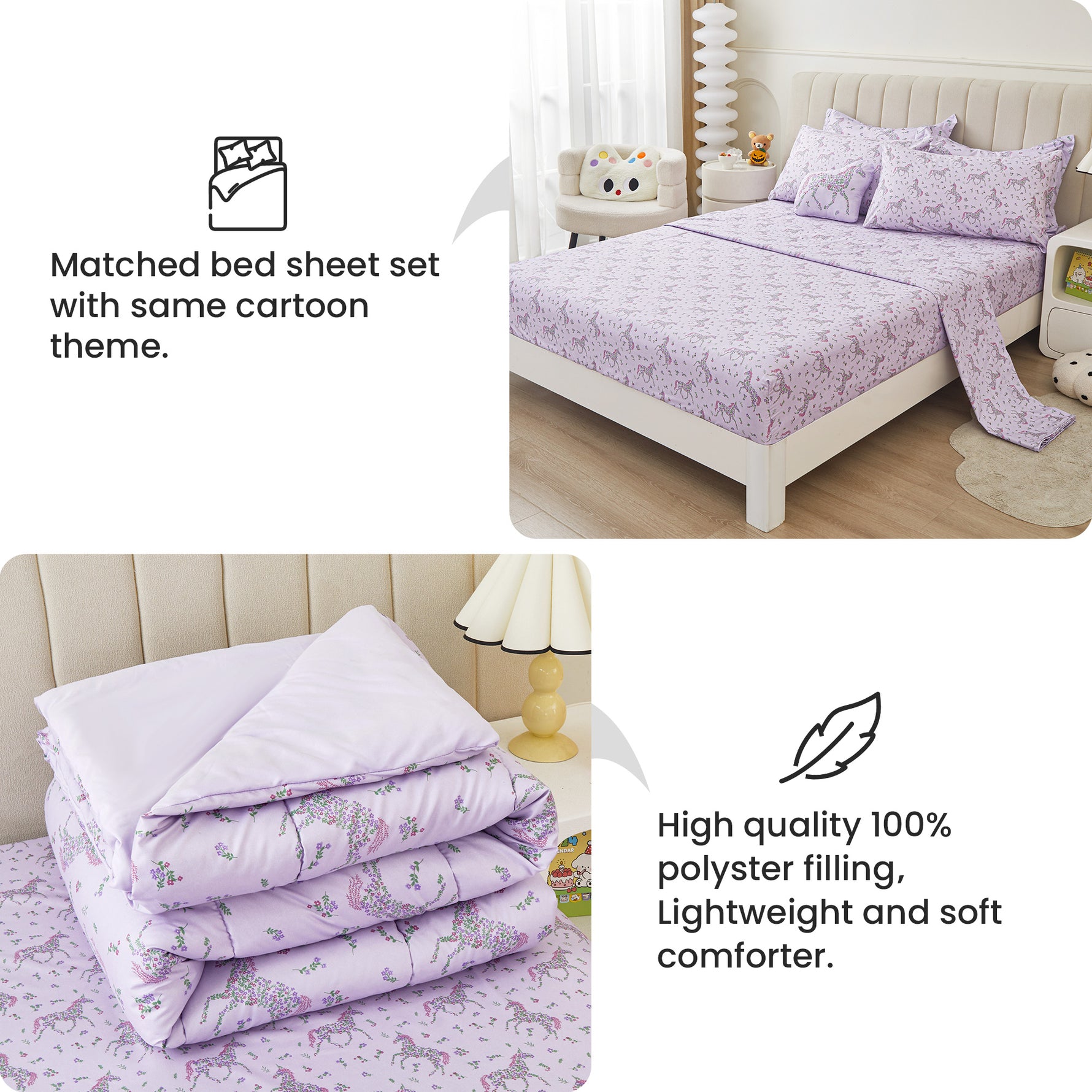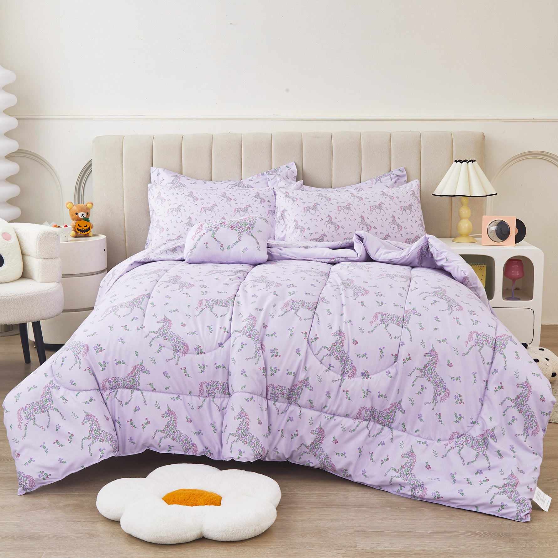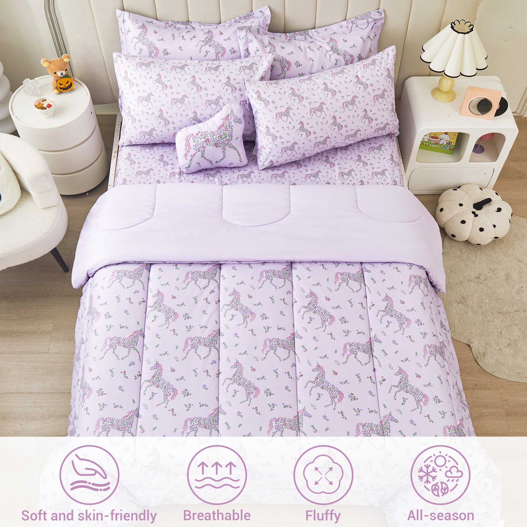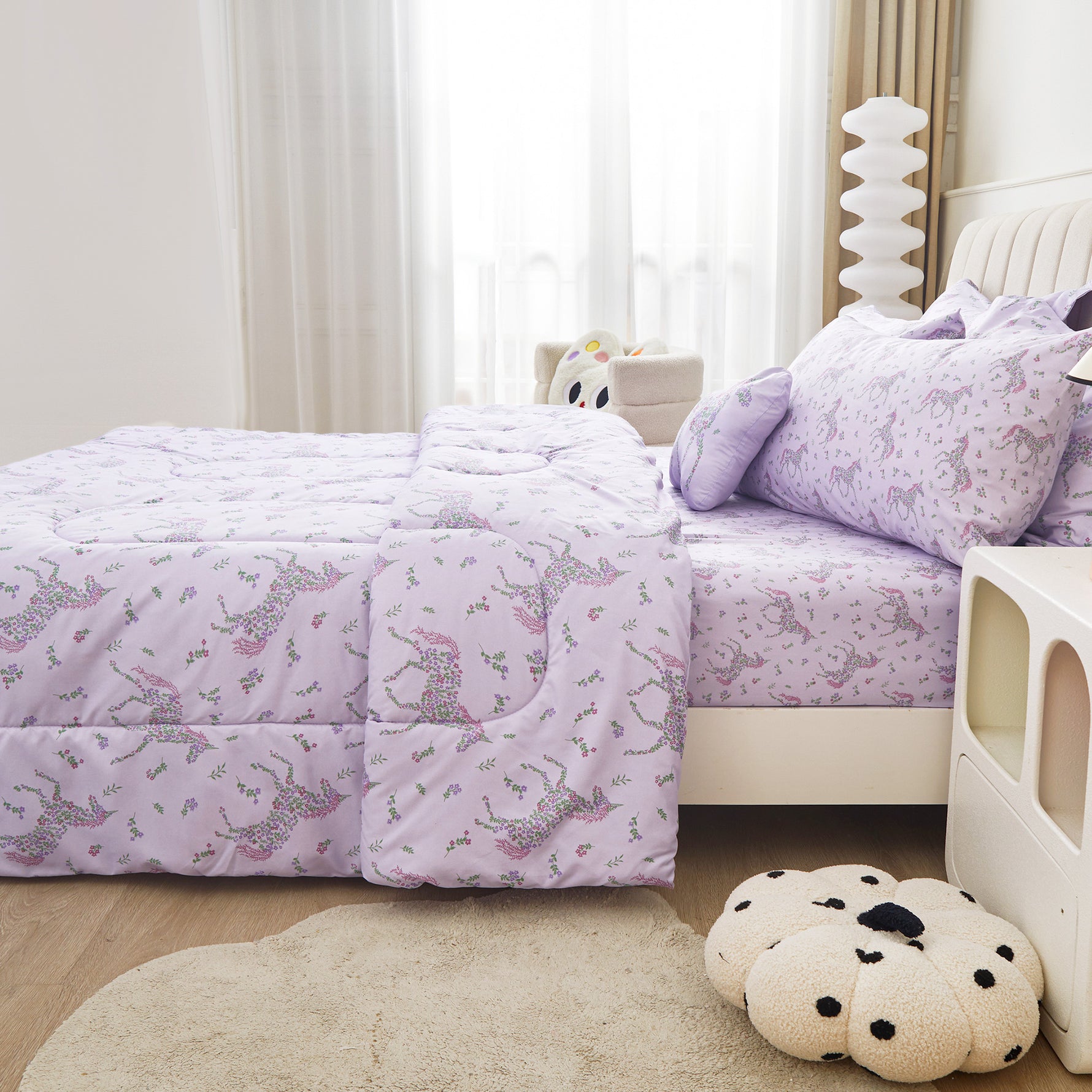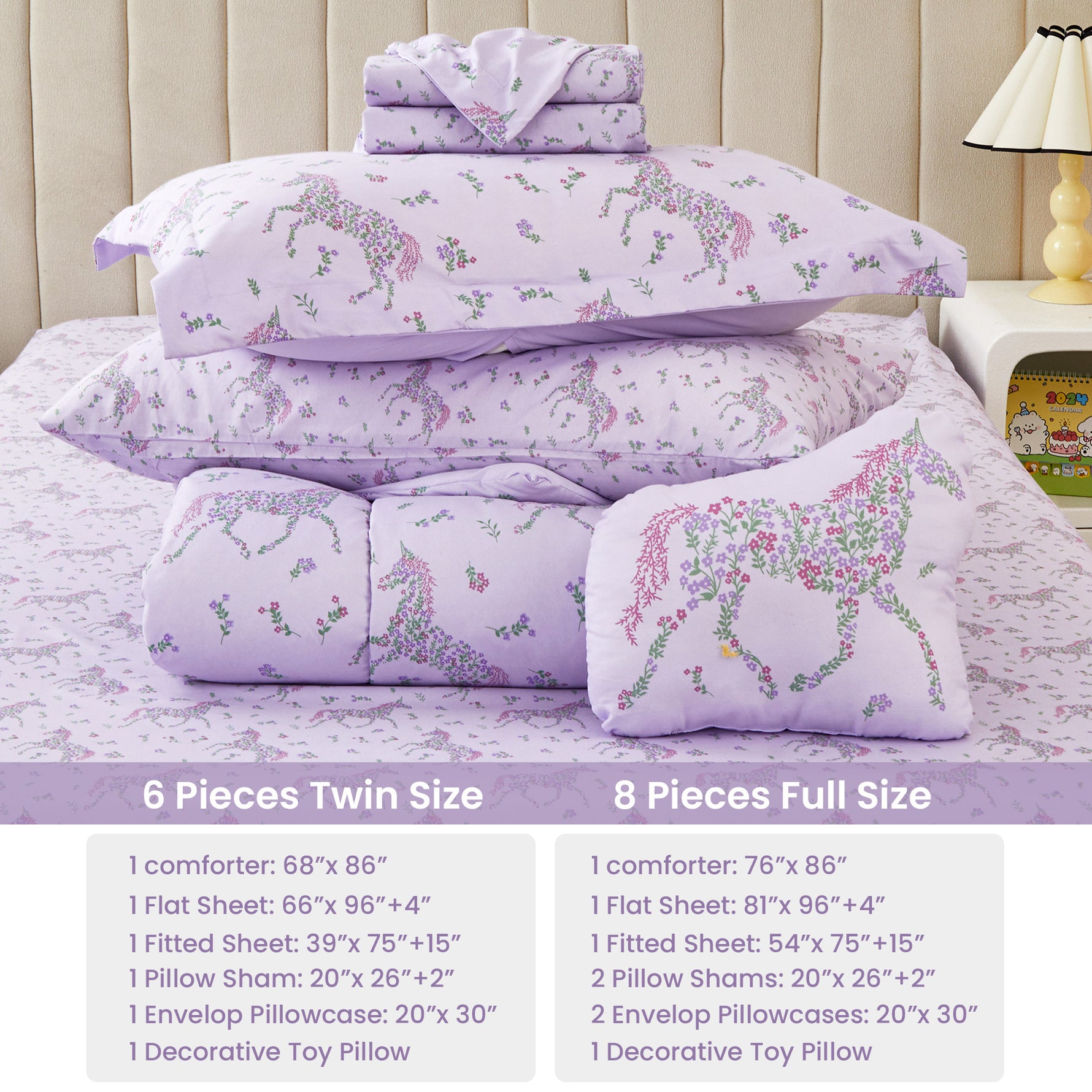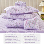 Purple Floral Unicorn 6/8 Pcs Comforter Sets for Girls Kids