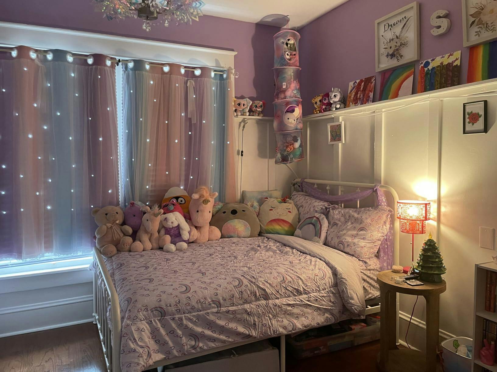6 Pcs Girls Twin Bedding Set: Includes 1 comforter (68"x86"), 1 flat sheet (66"x96"+4"), 1 fitted sheet (39"x75"+15"), 1 envelop pillowcase (20"x30"), 1 pillow sham (20"x26"+2") and 1 decorative toy pillow.