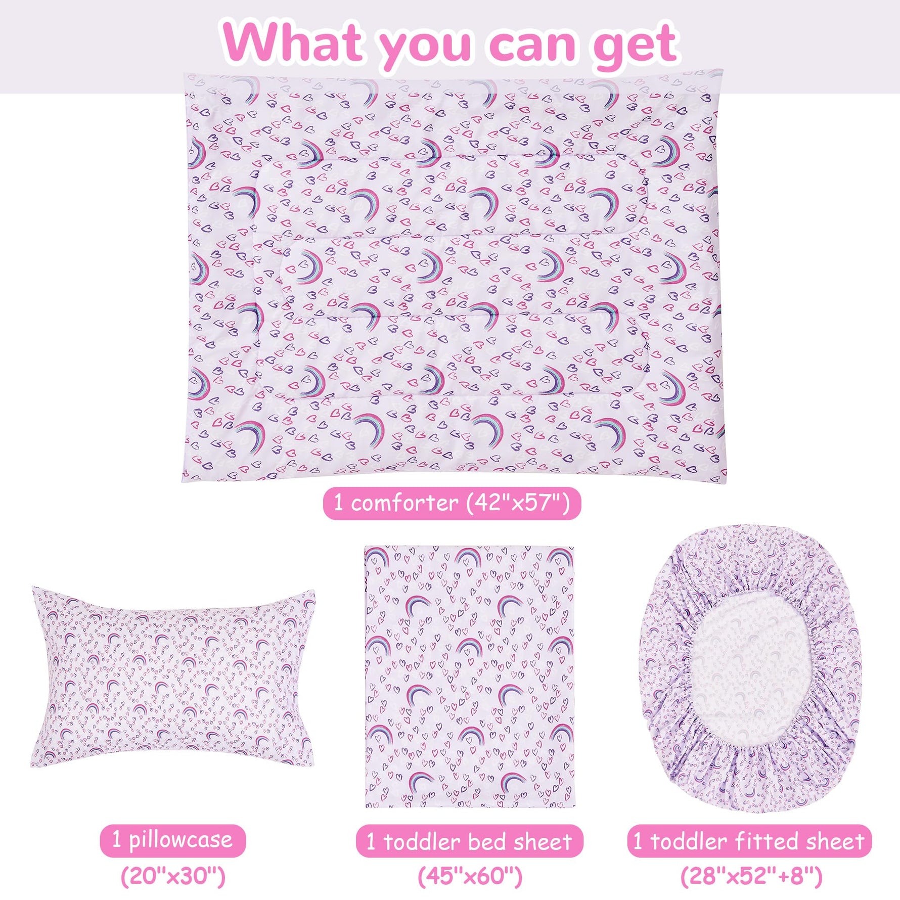 Includes: Comforter (42"x57"), flat sheet (45"x60"), fitted sheet (28"x52") + pillowcase (20"x30") – instant nursery upgrade