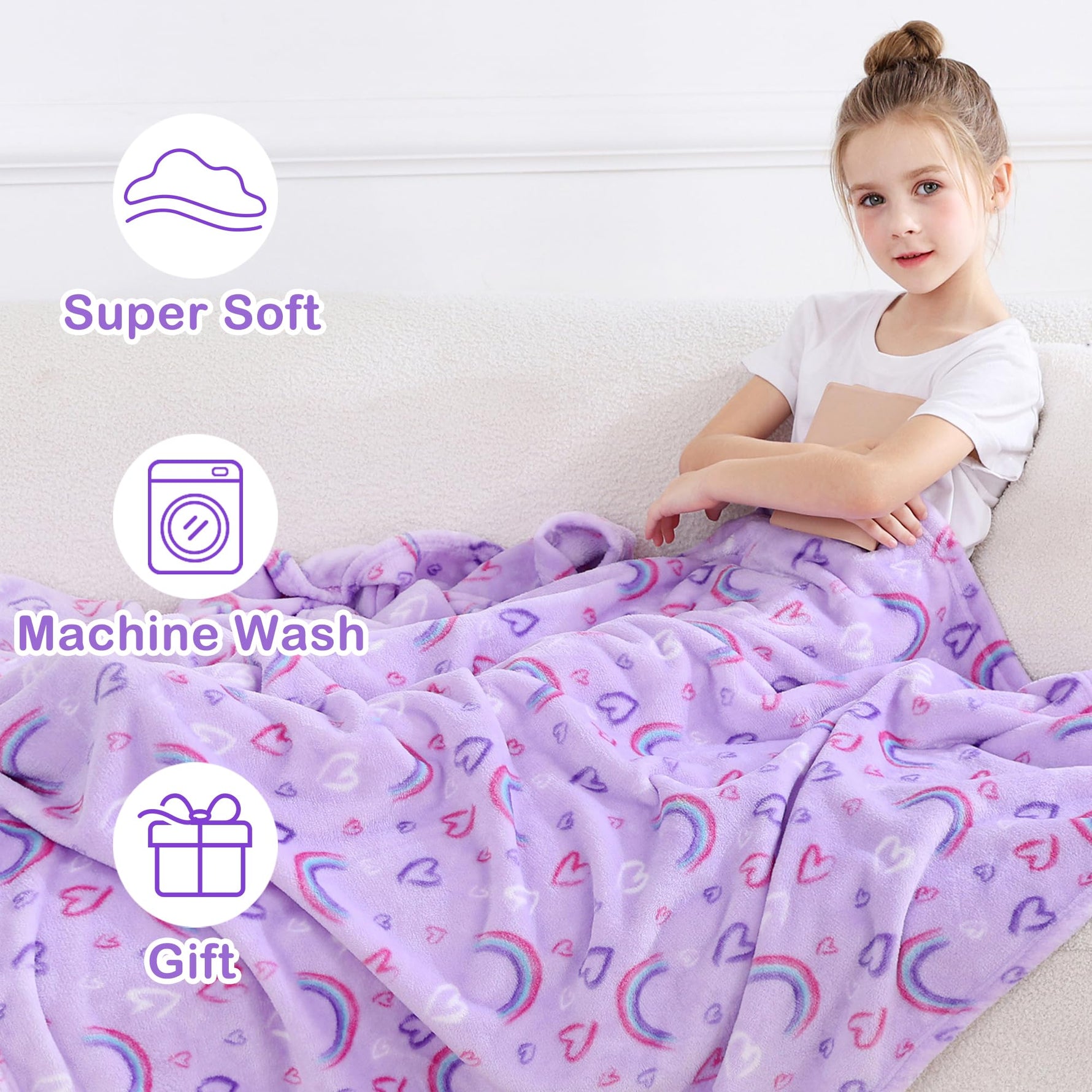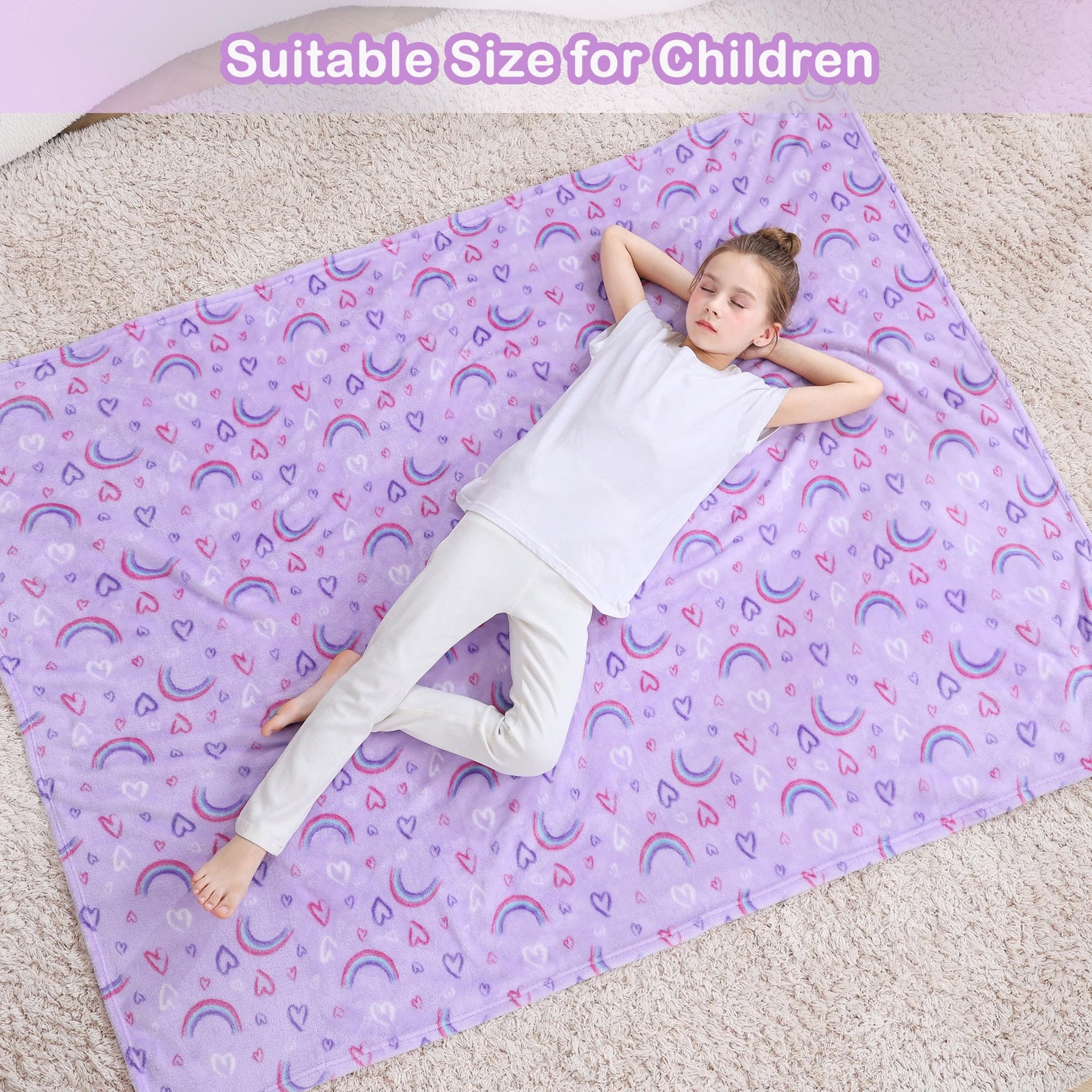 Purple Rainbow Kids Throw Blanket for Boys and Girls Soft Cozy Flannel