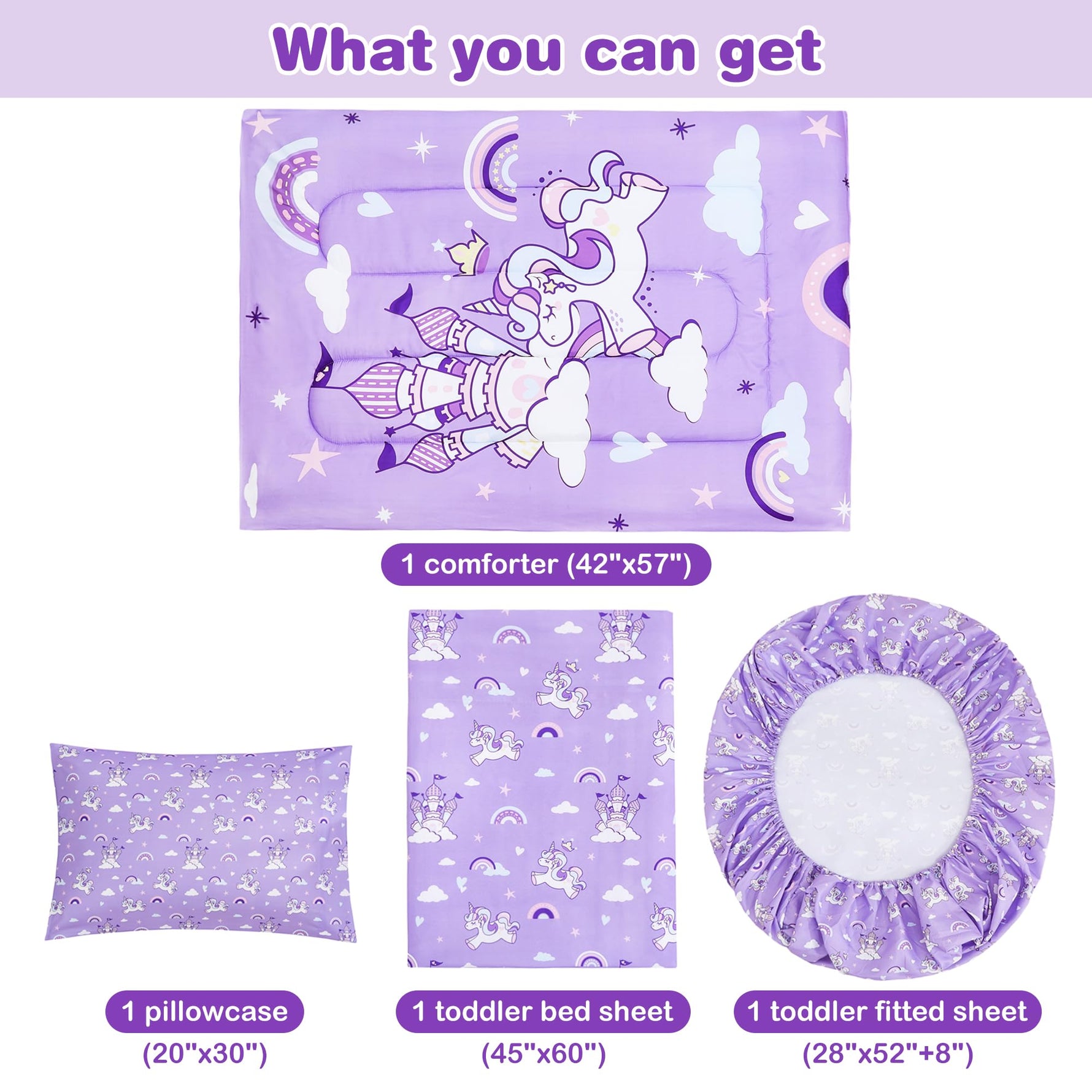 Includes: Comforter (42"x57"), flat sheet (45"x60"), fitted sheet (28"x52") + pillowcase (20"x30") – instant nursery upgrade