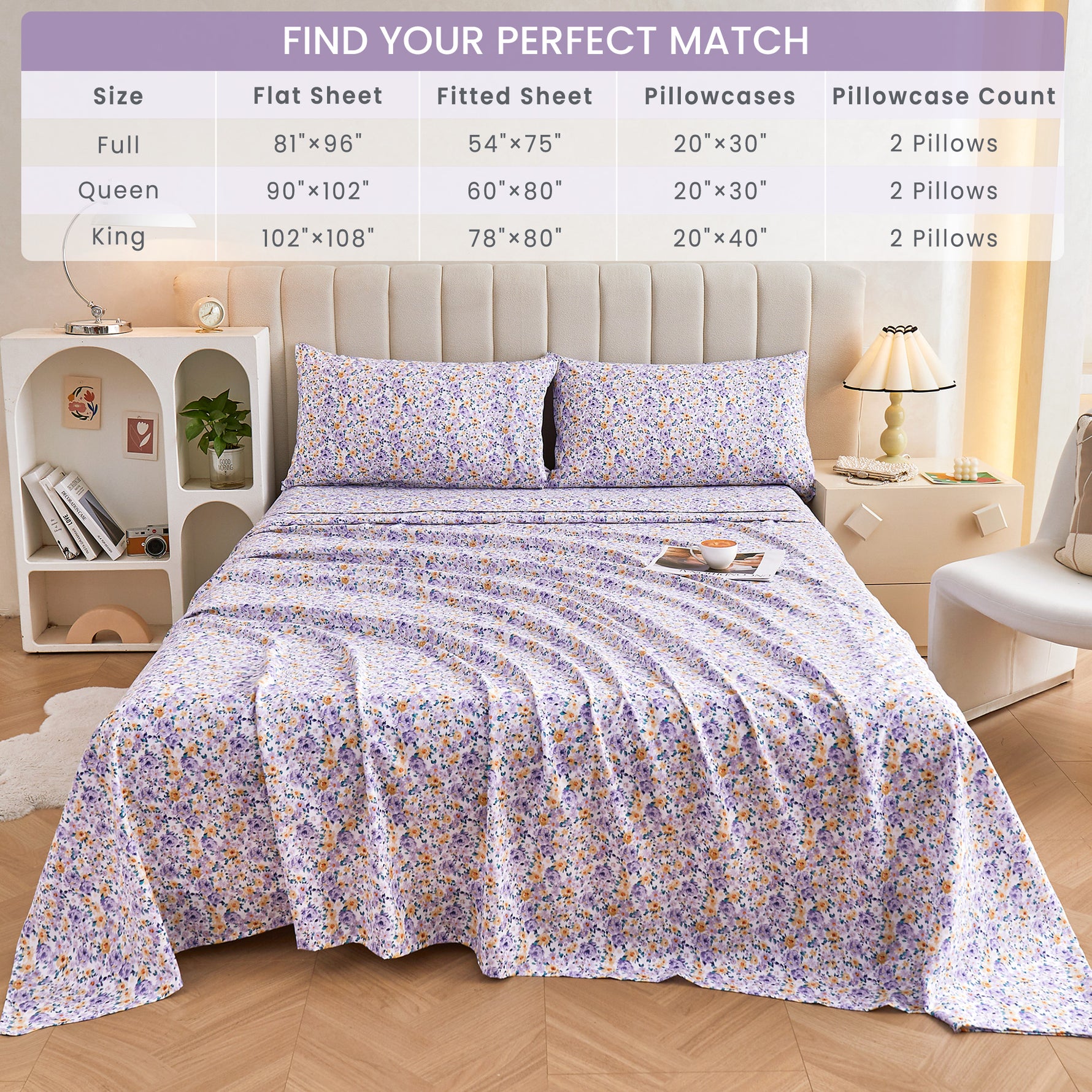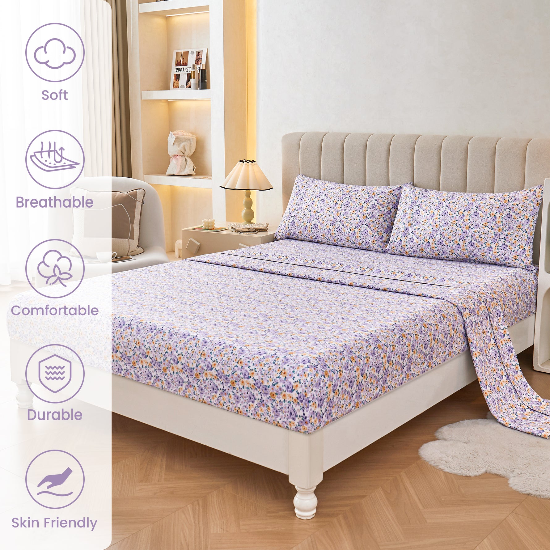 Unit price per- Made from premium brushed microfiber, the purple floral sheet is soft, breathable, and smooth.