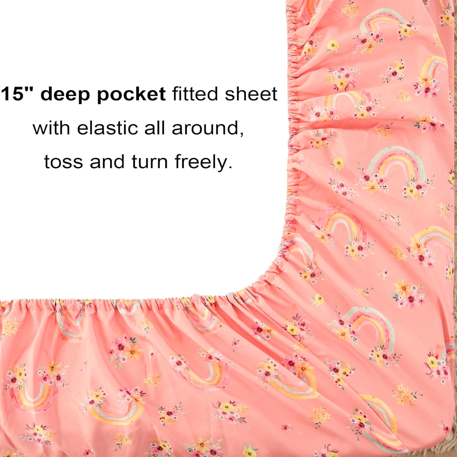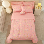 - 6 Pcs Girls Twin Bedding Set: Includes 1 comforter (68"x86"), 1 flat sheet (66"x96"+4"), 1 fitted sheet (39"x75"+15"), 1 envelop pillowcase (20"x30"), 1 pillow sham (20"x26"+2") and 1 decorative toy pillow.
