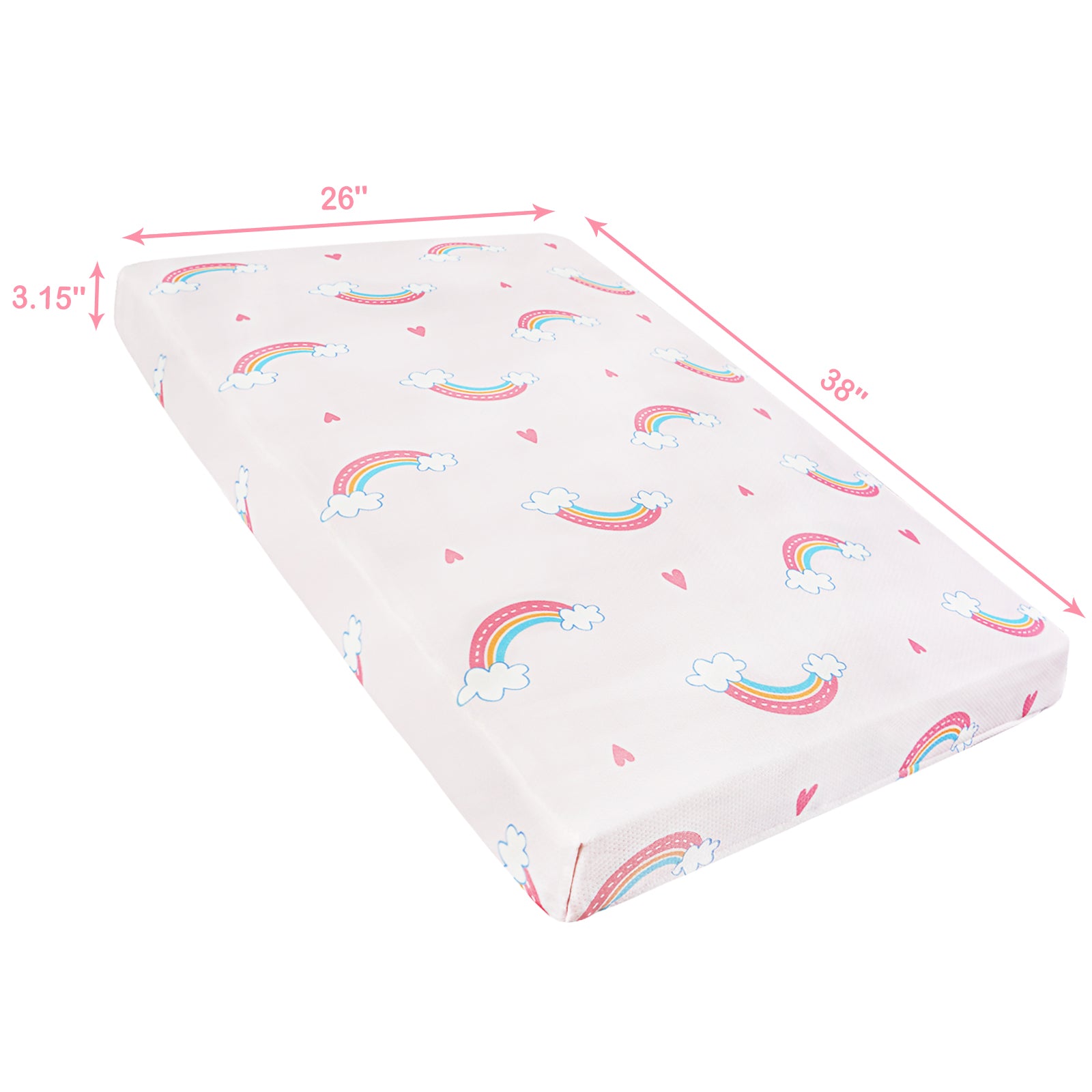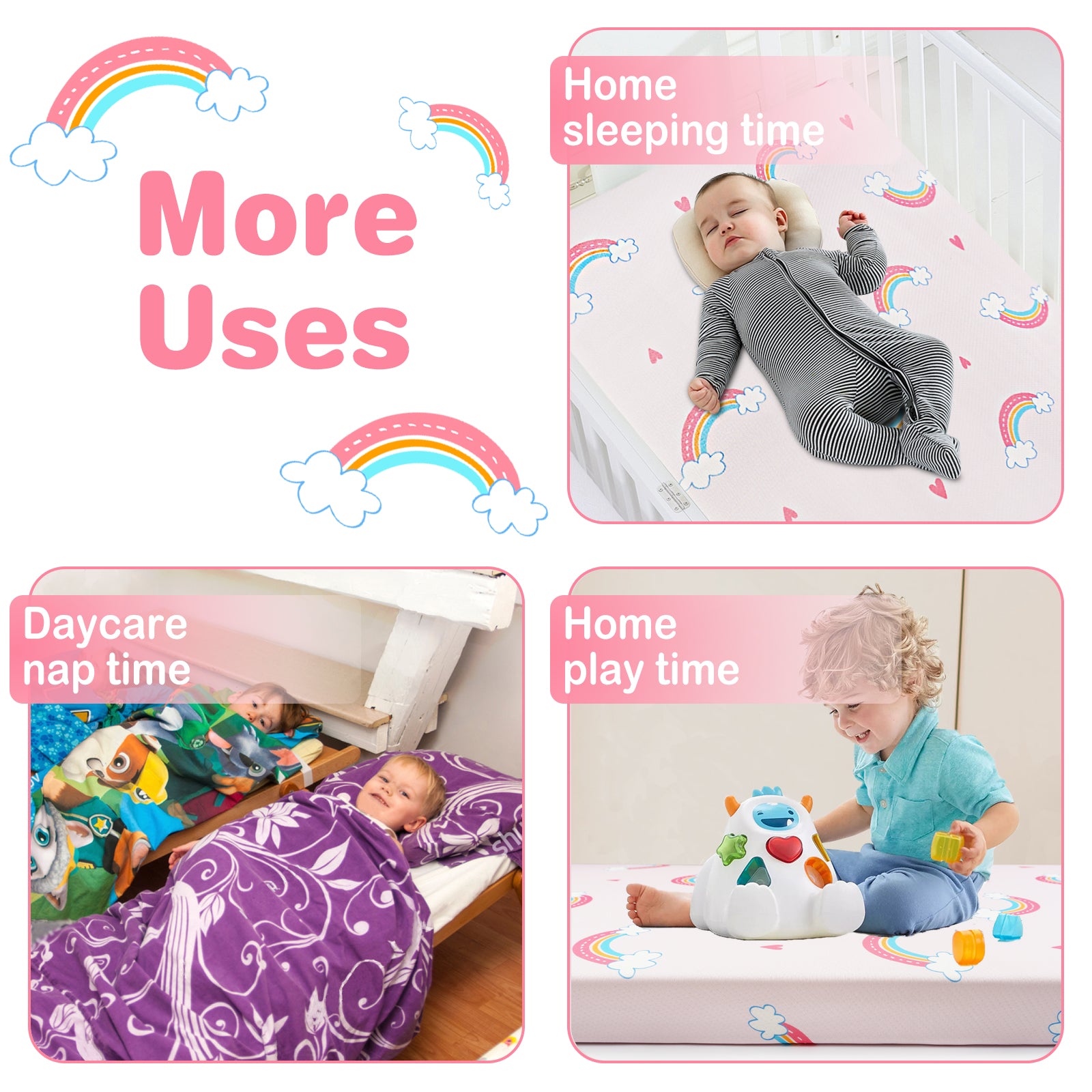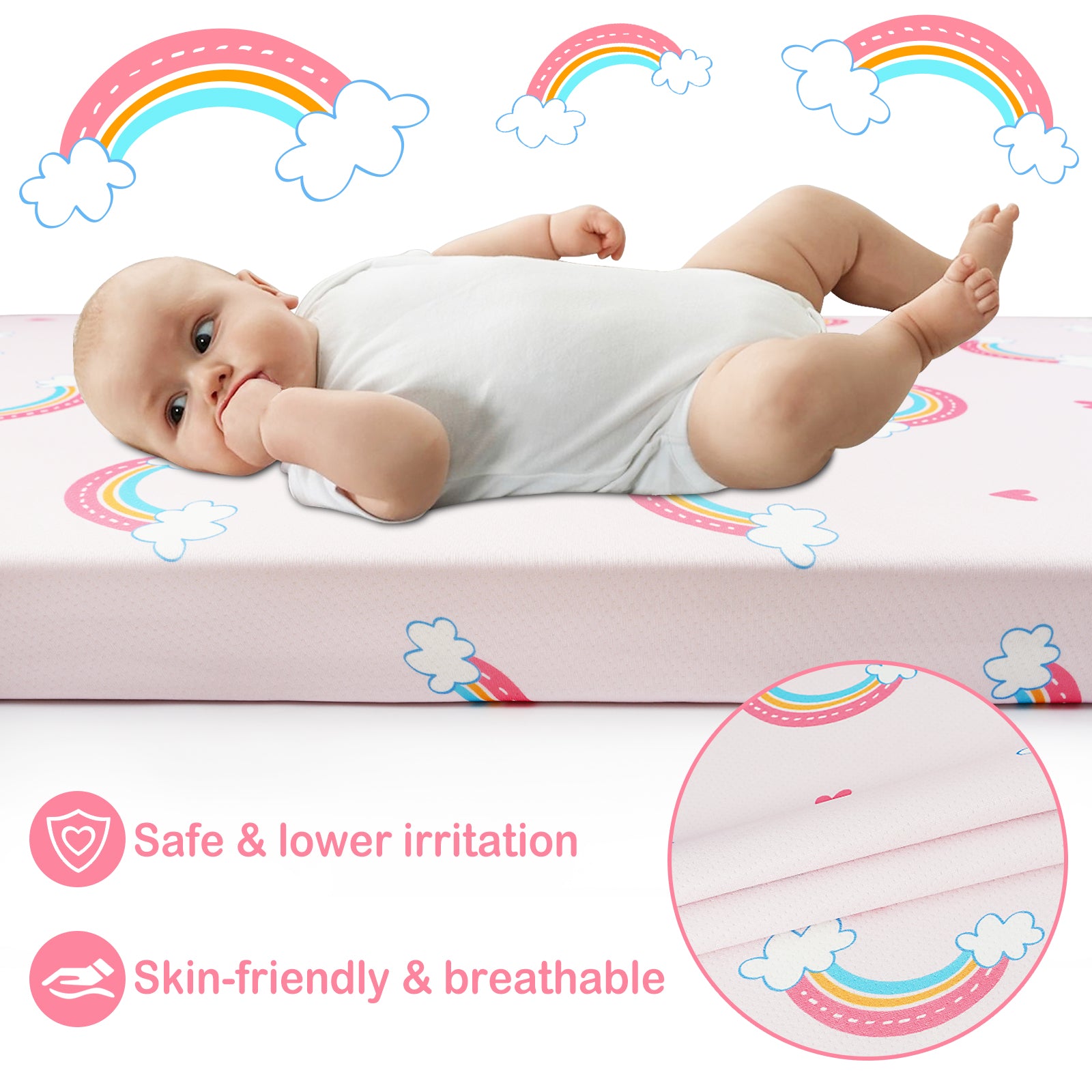 More Safety: The pack and play mattress is designed with rounded corners, NO GAPS, perfect fit for 38”x26”Pack n play mini cribs, the edges of the mattress are edge wrapped to ensure a tight fit with the crib, providing a safe sleeping environment for your baby and more peace of mind for mom.