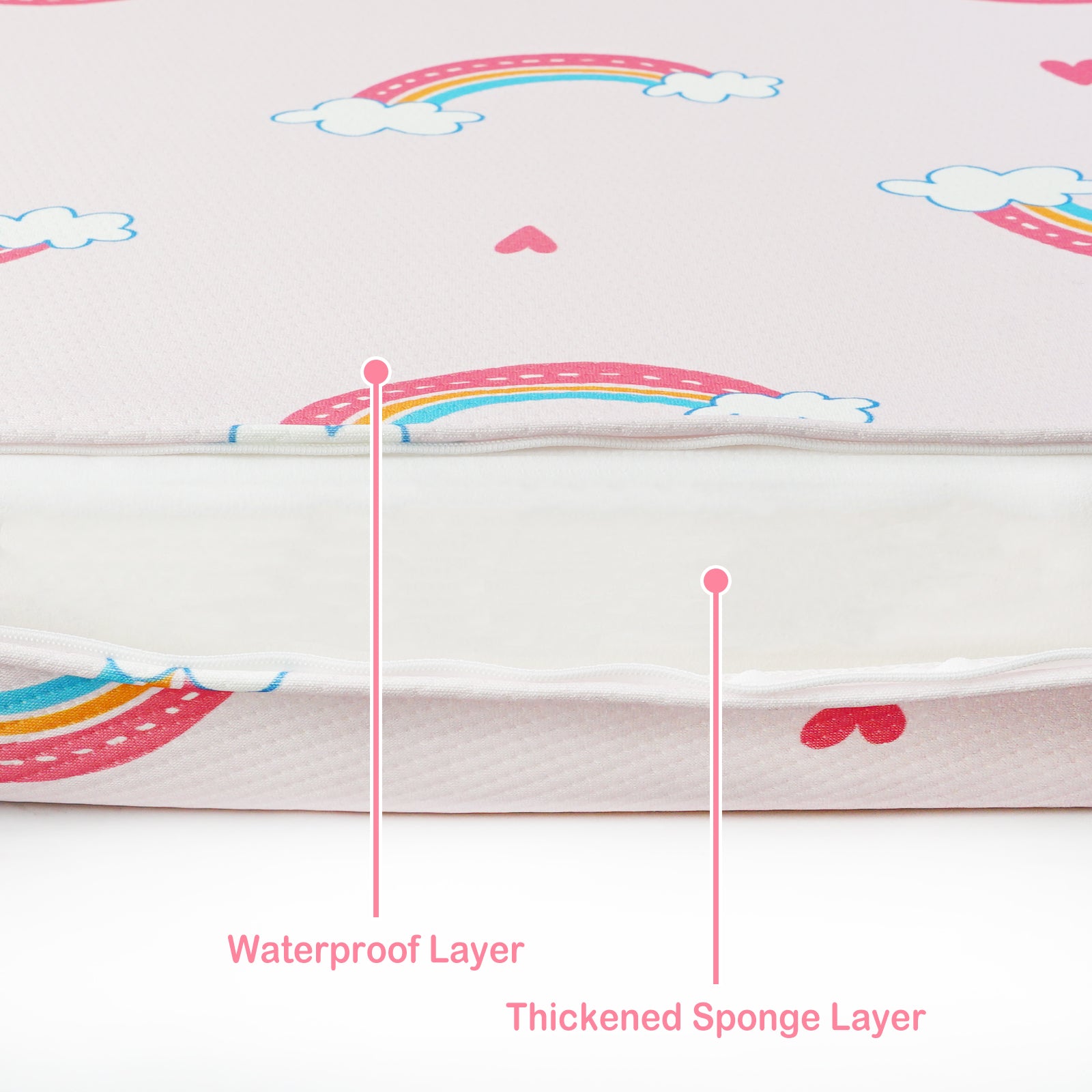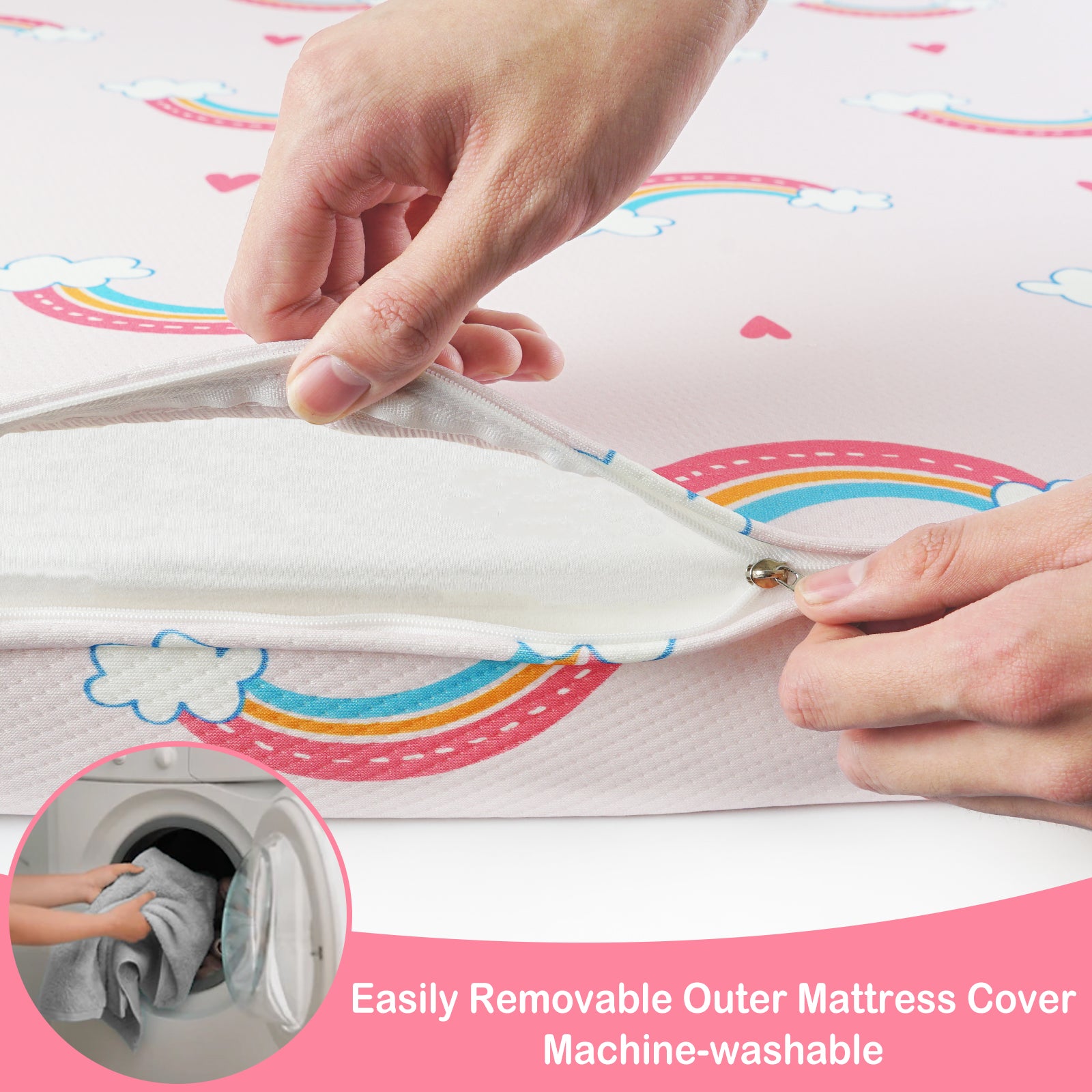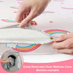 Machine Washable: The toddler mattress adopts double-layer protective cover design. The outermost cover is detachable and waterproof, and can be removed at any time for cleaning or removing stains, which is very convenient.The inner protective cover protects the sponge layer, making it last longer.