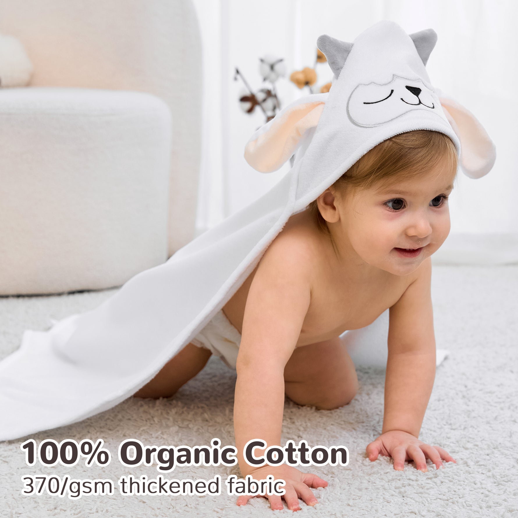 (Sheep & Dinosaur) 2 Pack Cotton Hooded Baby Towels, Extra Thick and Absorbent, 32" * 32"
