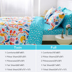 Unit price perPerfect for Kids: Our twin bedding sets include a soft 1 comforter (68"x86"), 1 flat sheet (66"x96"), 1 fitted sheet (39"x75"+15"), 1 pillowcase (20"x30") and 1 pillow sham (20"x26") – 5 pieces twin comforter set with sheets for girls.Our full bedding sets include a soft 1 comforter (76"x86"), 1 flat sheet (81"x96"), 1 fitted sheet (54"x75"+15"), 2 pillowcases (20"x30") and 2 pillow shams (20"x26"+2") – 7 pieces full comforter set with sheets for girls