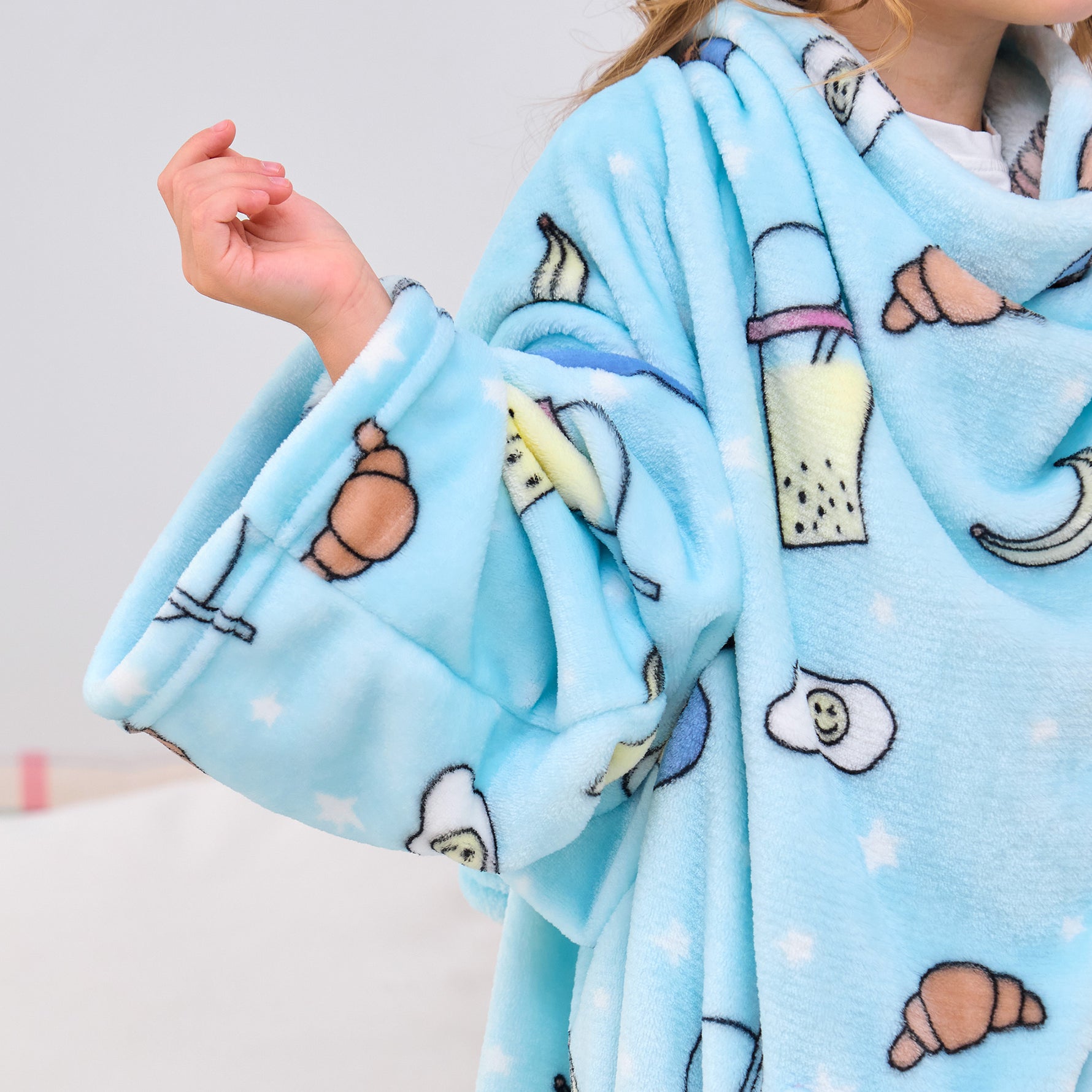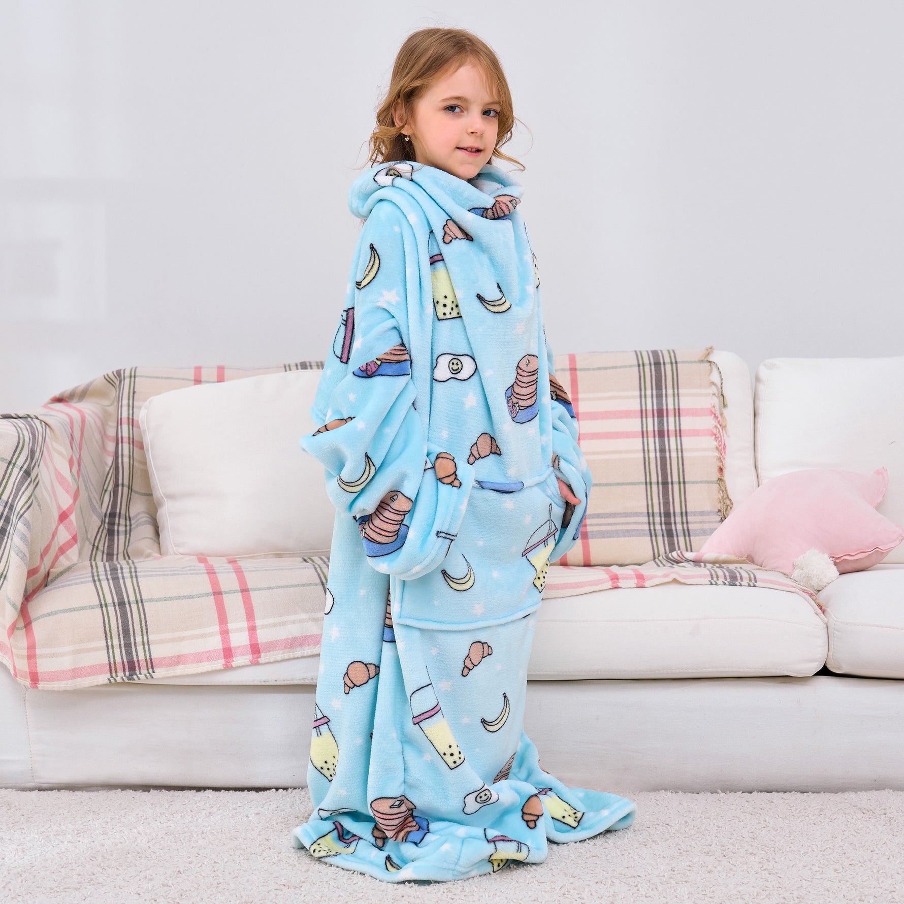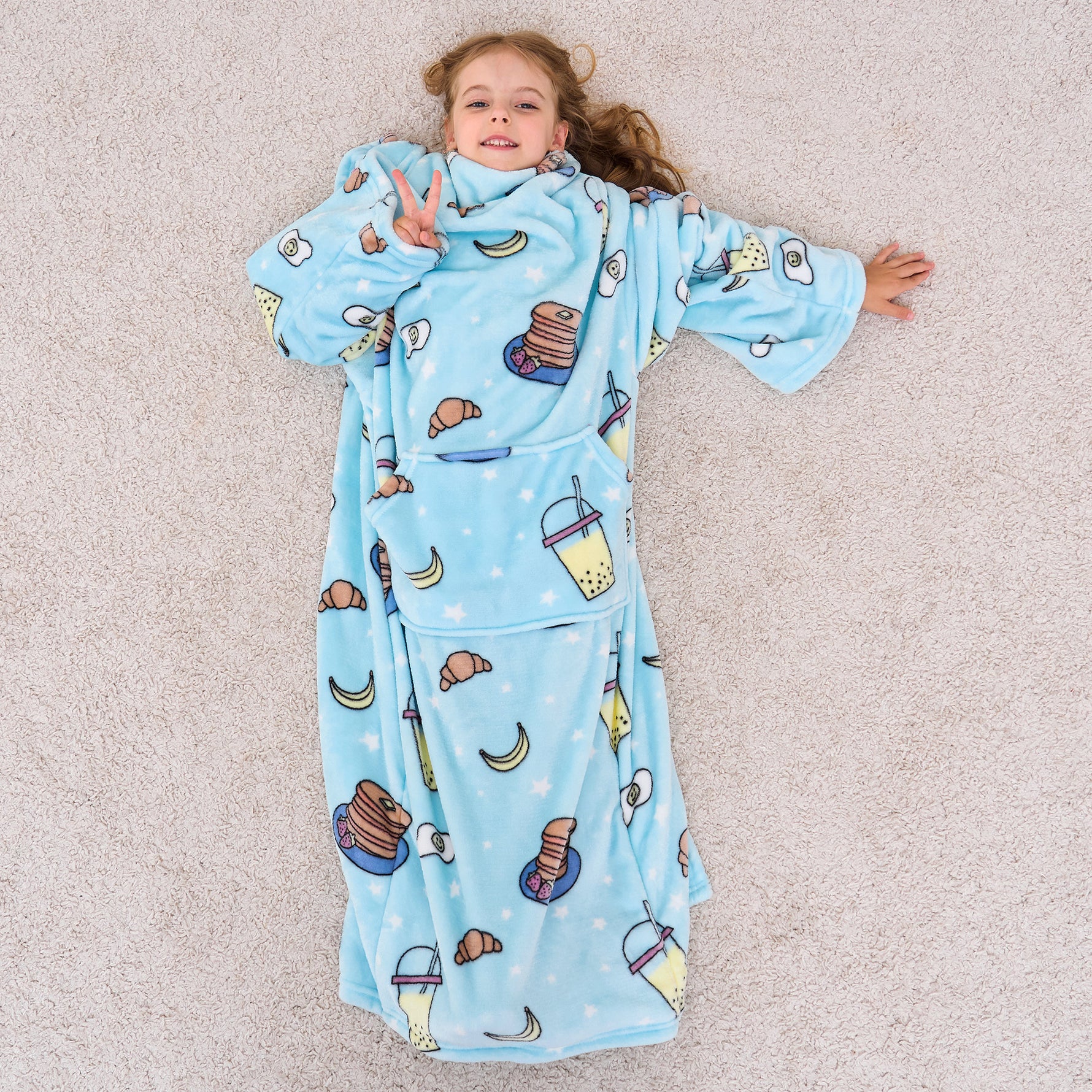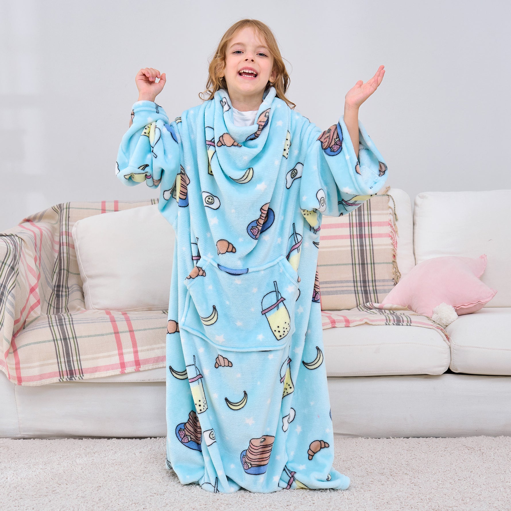 Snacks Wearable Fleece Blanket with Sleeves & Foot Pocket for Kids