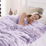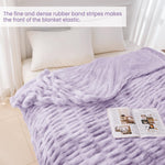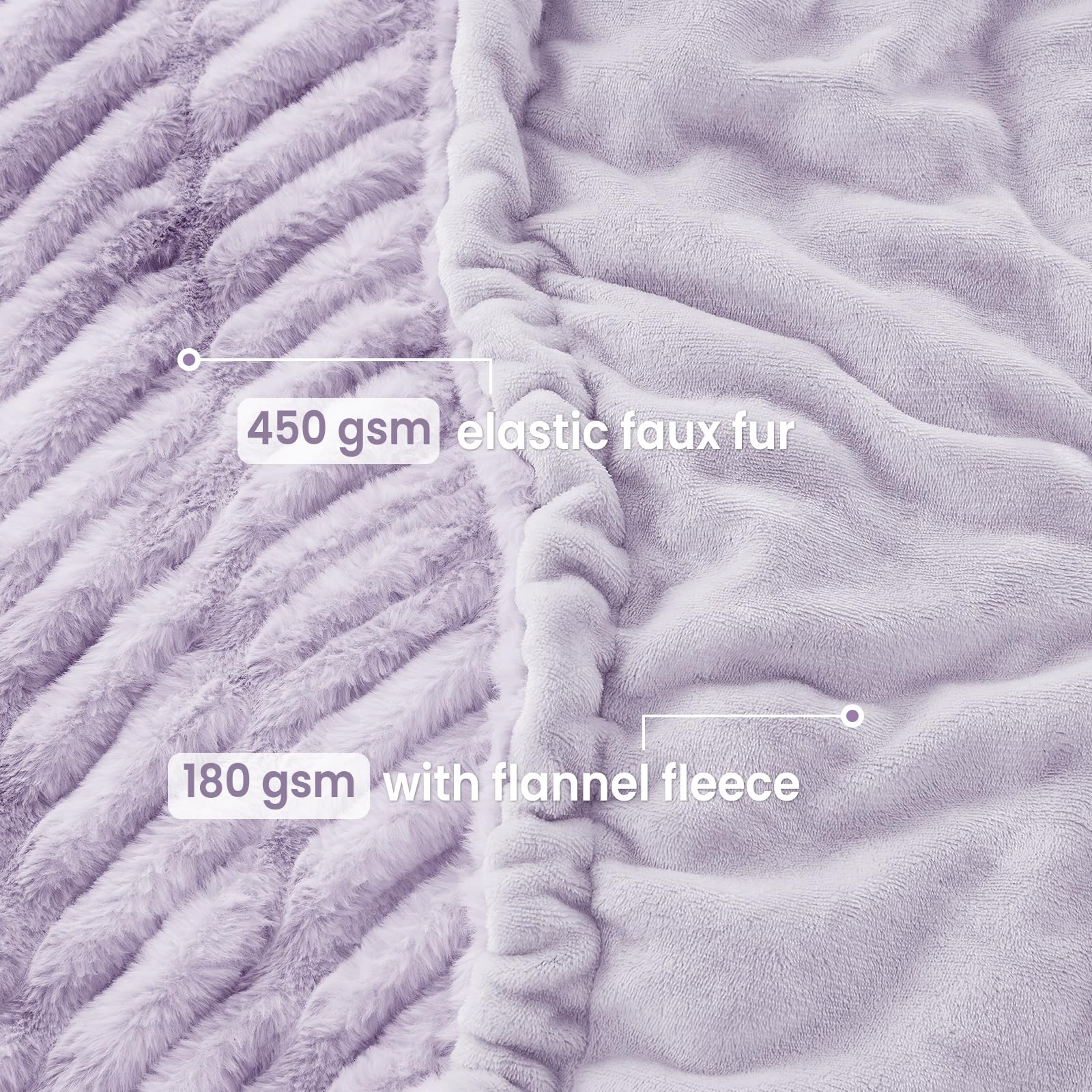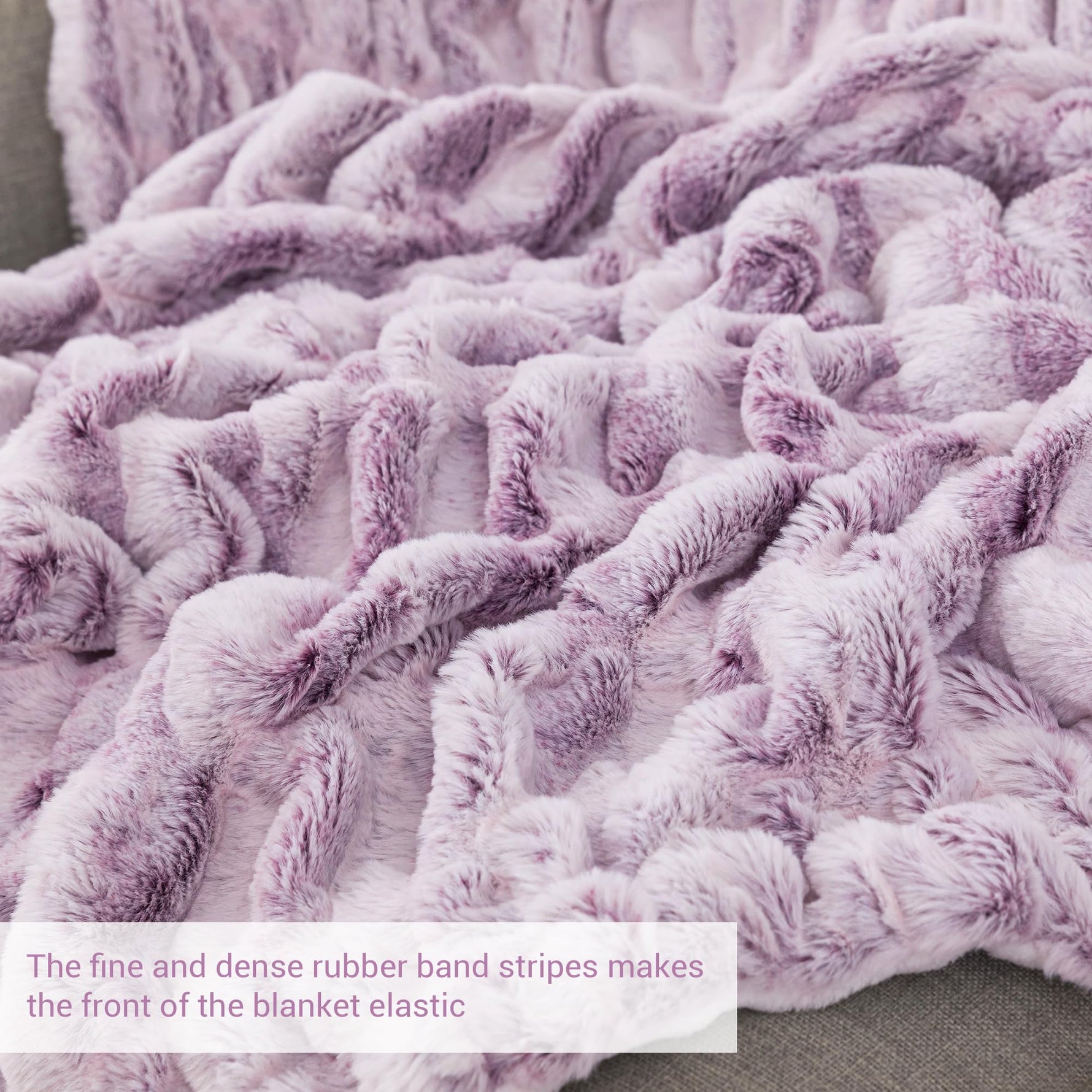 Striped rabbit faux fur (light pink) paired with skin-friendly flannel backing delivers layered warmth and tactile comfort.