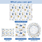 Includes: Comforter (42"x57"), flat sheet (45"x60"), fitted sheet (28"x52") + pillowcase (20"x30") – instant nursery upgrade