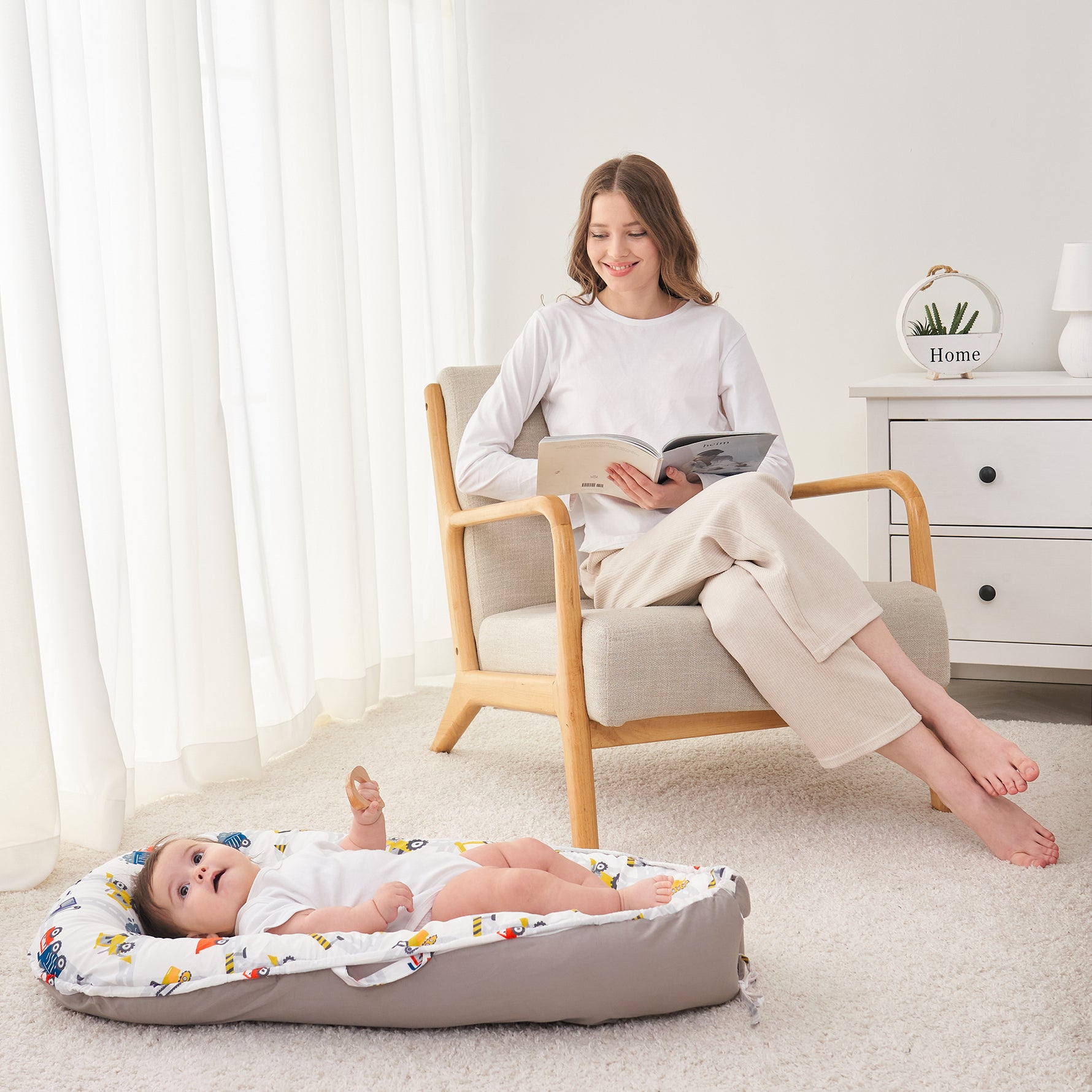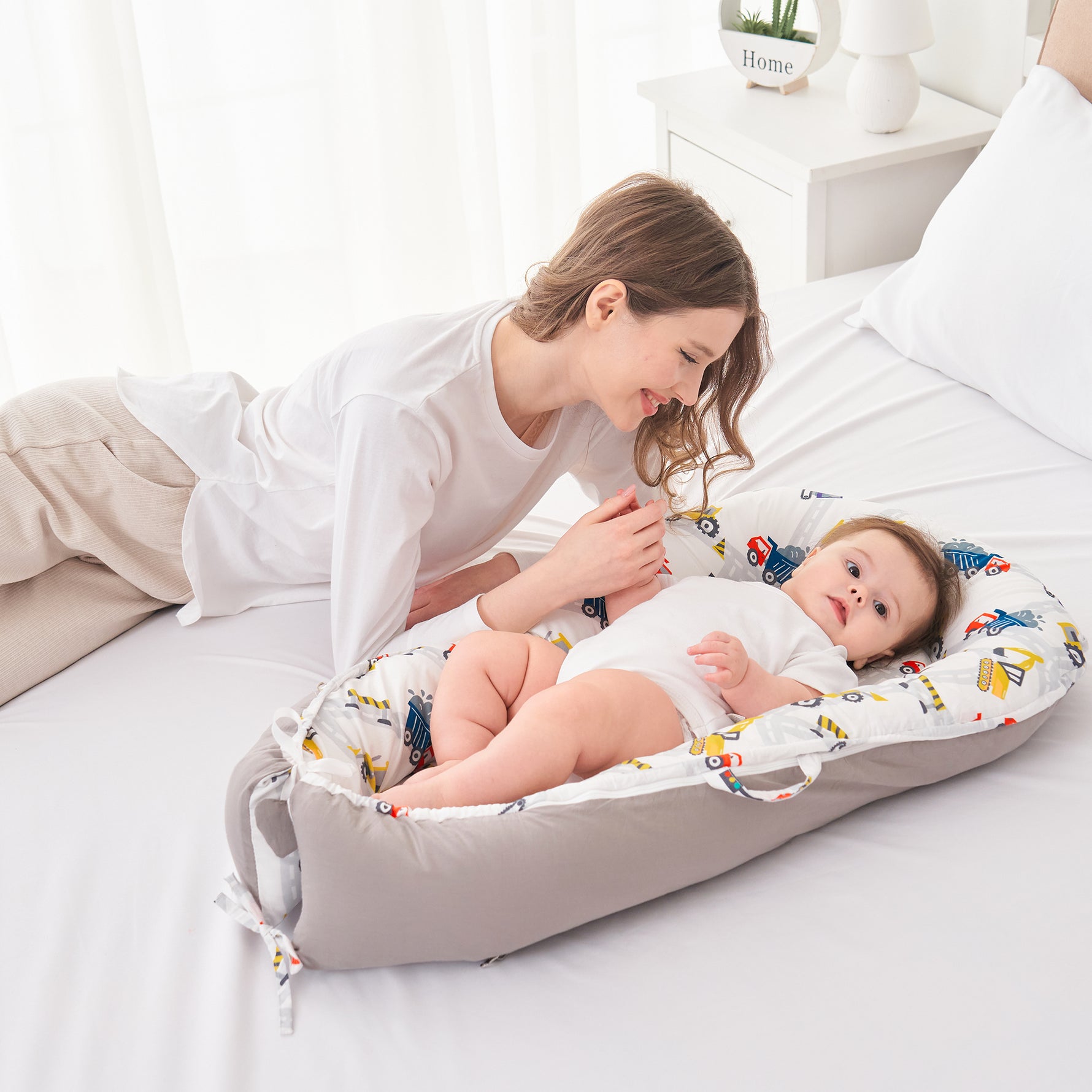 PORTABLE AND MACHINE WASHABLE : The baby nest comes with a sewn-in handle for easy portability. It can be put on your beds, the living room floor, sofa or baby cot.