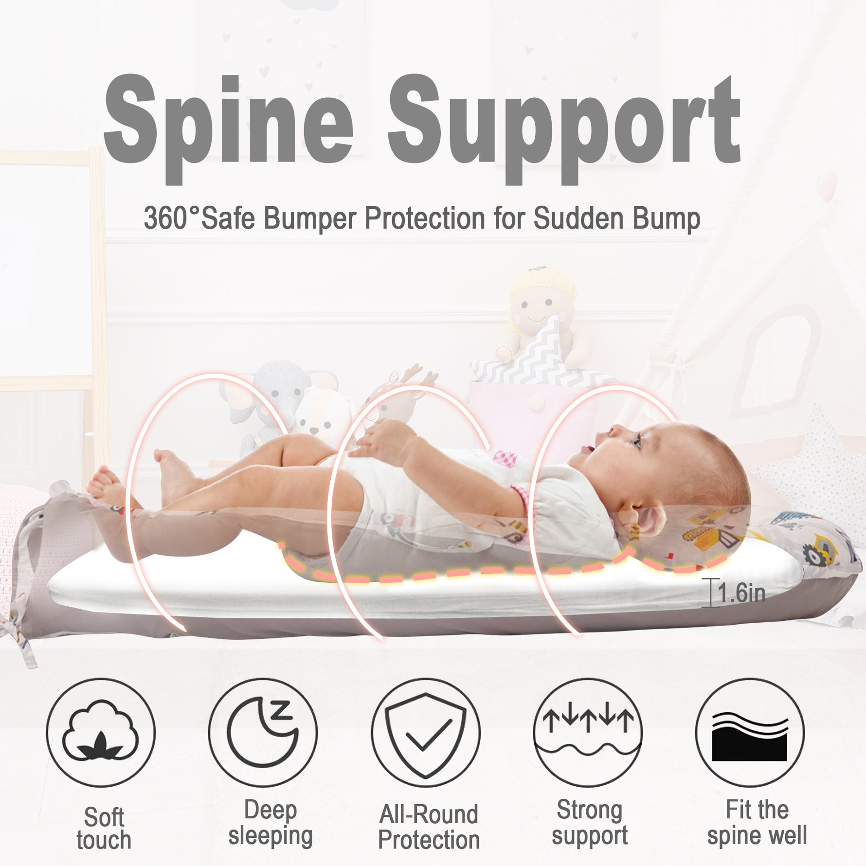 Unique recessed interior designed to cradle the baby in the bottom, takes away the worry of rolling onto the baby in the night and to allow your baby to have a deep and nice sleep. It creates a safe space for baby to sleep in bed with parent.