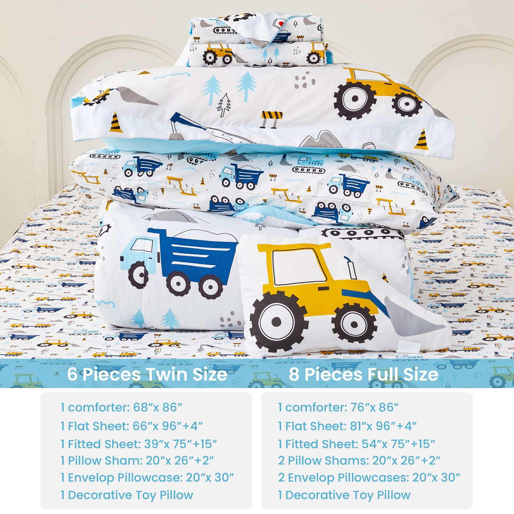 Truck Excavator 6/8 Pcs Comforter Sets for Girls Kids