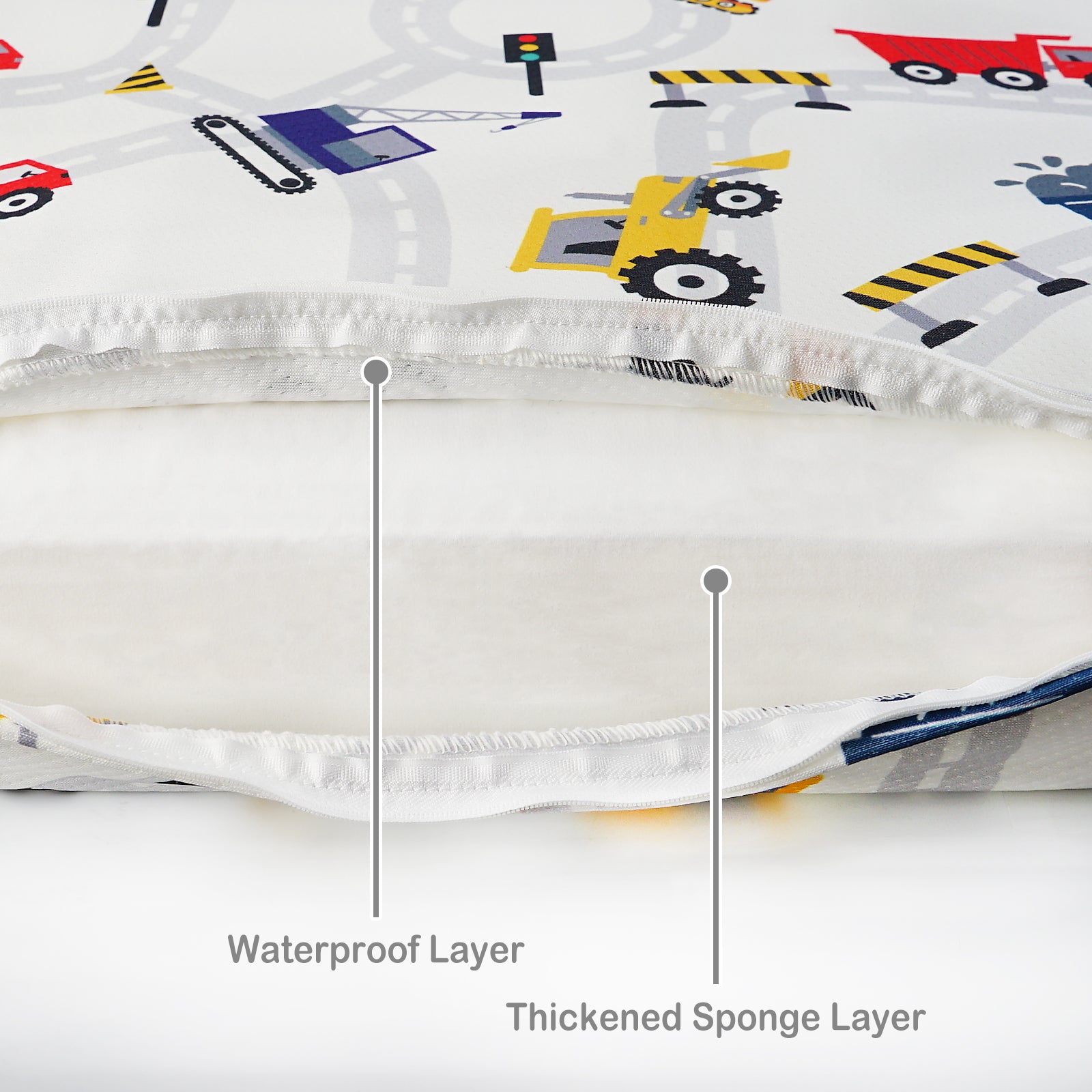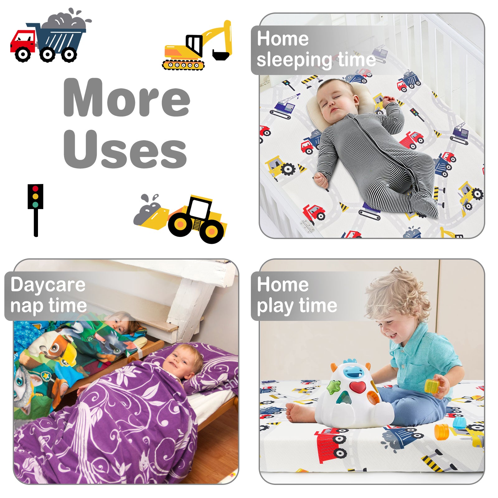 Machine Washable: The toddler mattress adopts double-layer protective cover design. The outermost cover is detachable and waterproof, and can be removed at any time for cleaning or removing stains, which is very convenient.The inner protective cover protects the sponge layer, making it last longer.