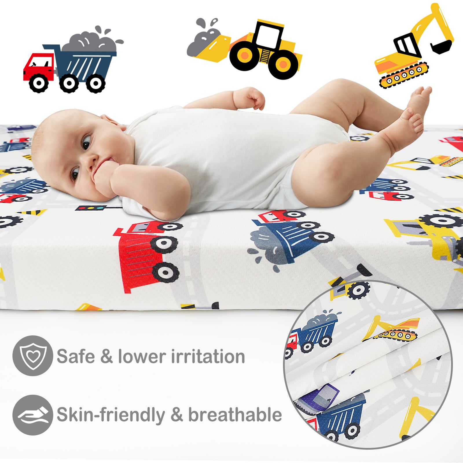 More Safety: The pack and play mattress is designed with rounded corners, NO GAPS, perfect fit for 38”x26”Pack n play mini cribs, the edges of the mattress are edge wrapped to ensure a tight fit with the crib, providing a safe sleeping environment for your baby and more peace of mind for mom.