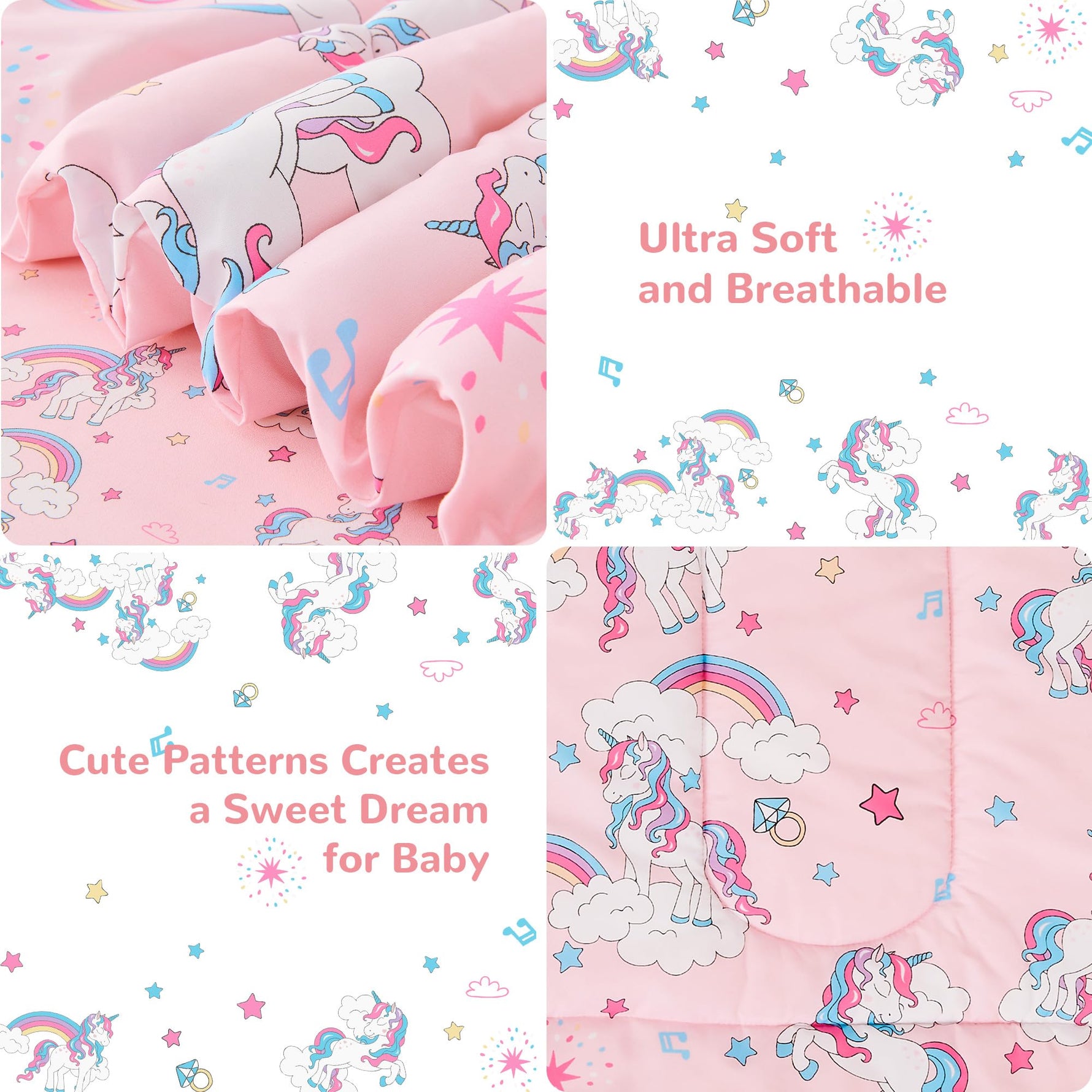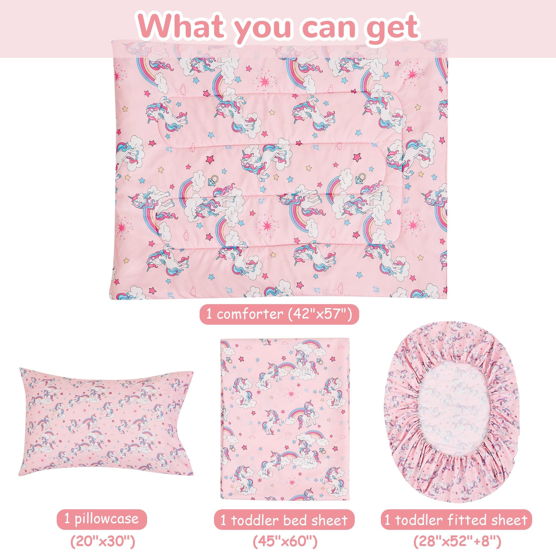 Includes: Comforter (42"x57"), flat sheet (45"x60"), fitted sheet (28"x52") + pillowcase (20"x30") – instant nursery upgrade