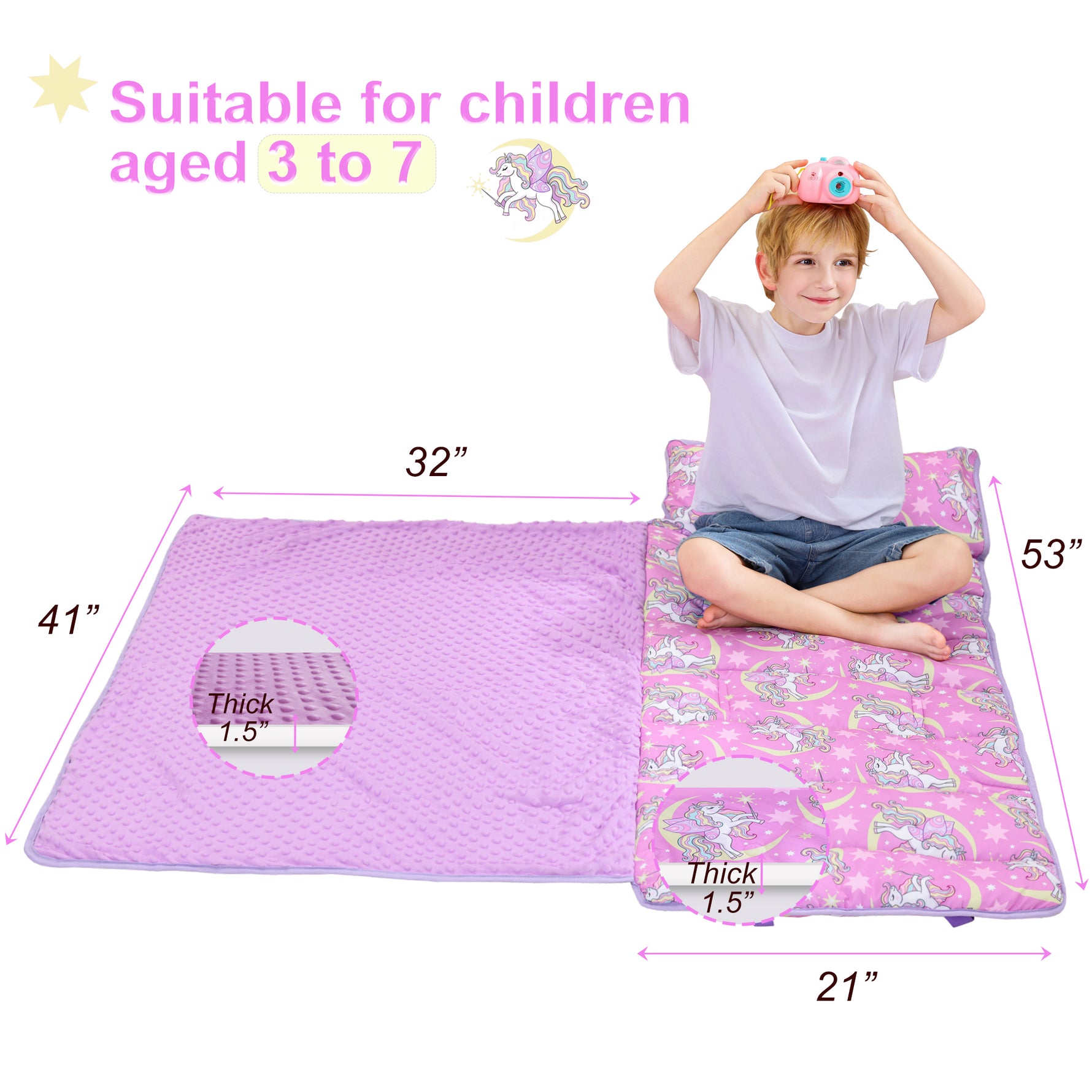 - Extra-Large and Thick:Mat finished size (including pillow): 50 "x 21 "x 2 ", blanket finished size: 41 " x 32 ". It is a perfect size designed for children ages 3 plus