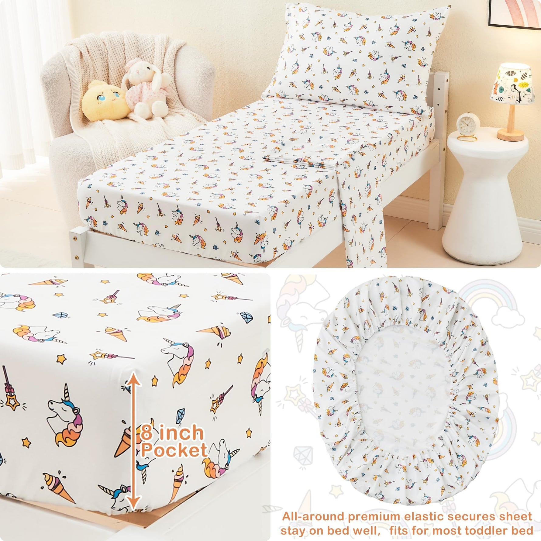Unicorn Rainbow 4 Pieces Toddler Bedding Set