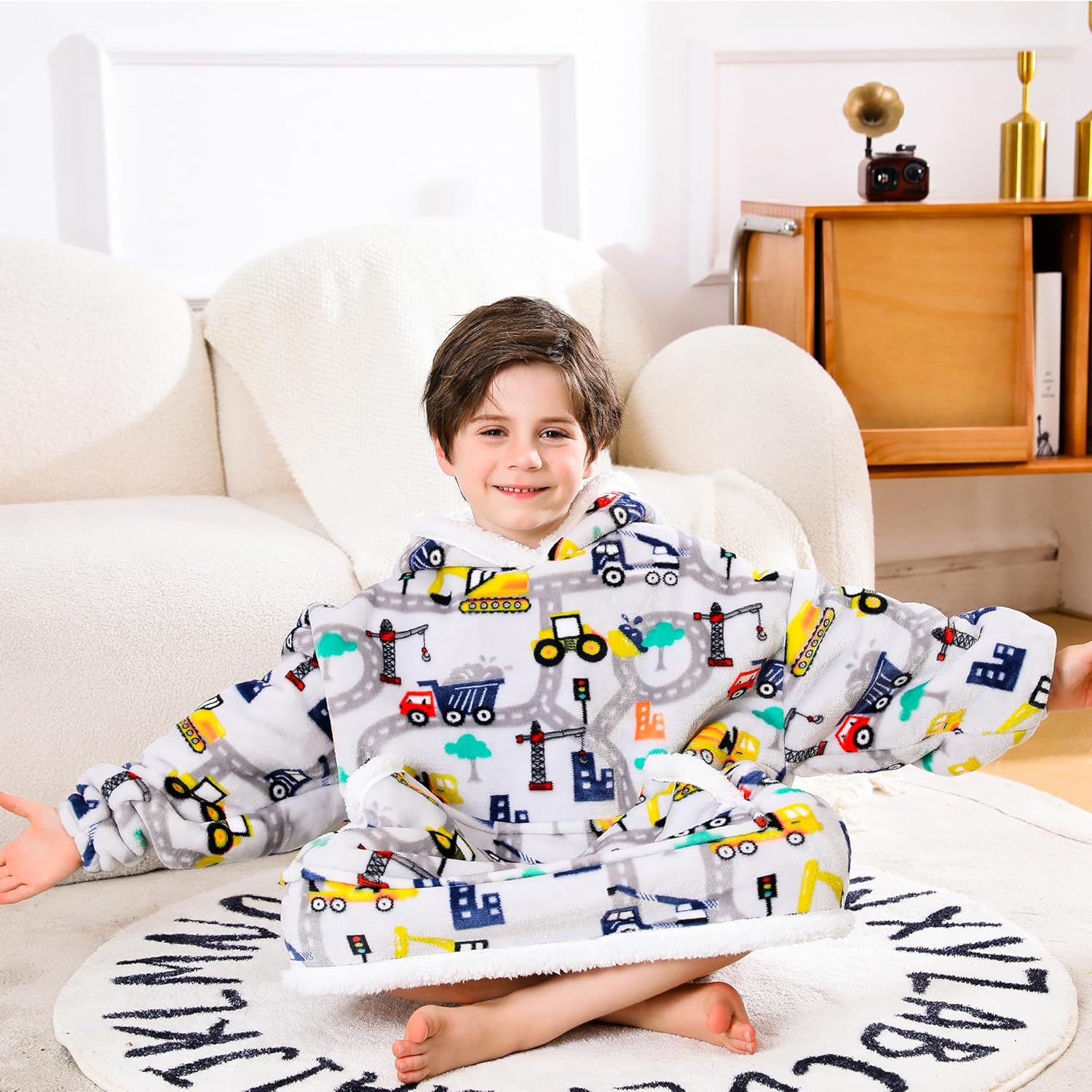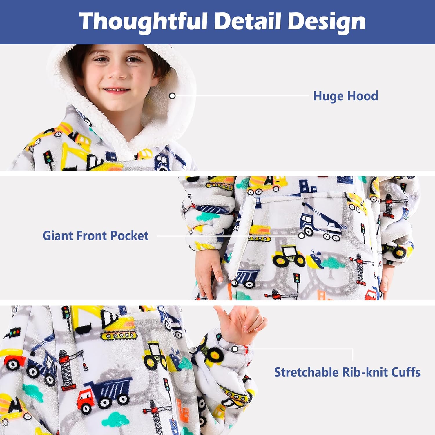 Construction Truck Wearable Blanket Hoodie for Kids