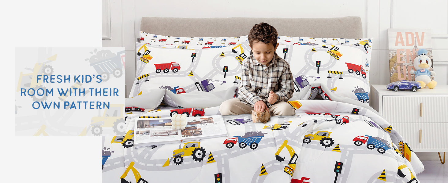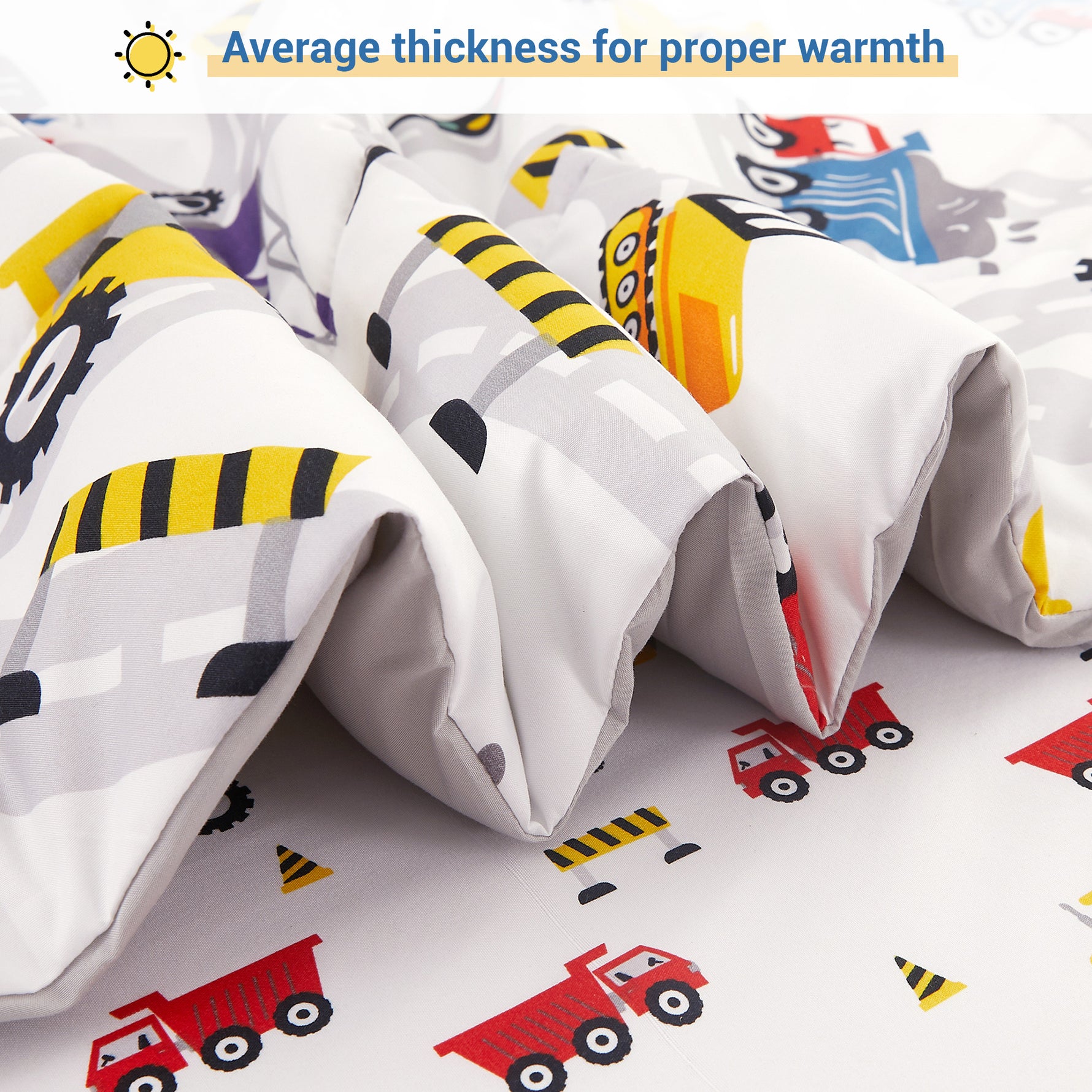 This cute boys bed set not only provides a comfortable and warm sleeping environment but also stimulates your child's interest in construction vehicles and the world around them. The soft and breathable material promotes better sleep quality, while the durable design ensures it can be enjoyed for a long time. It's a great way to make bedtime more enjoyable and create lasting memories for your child.