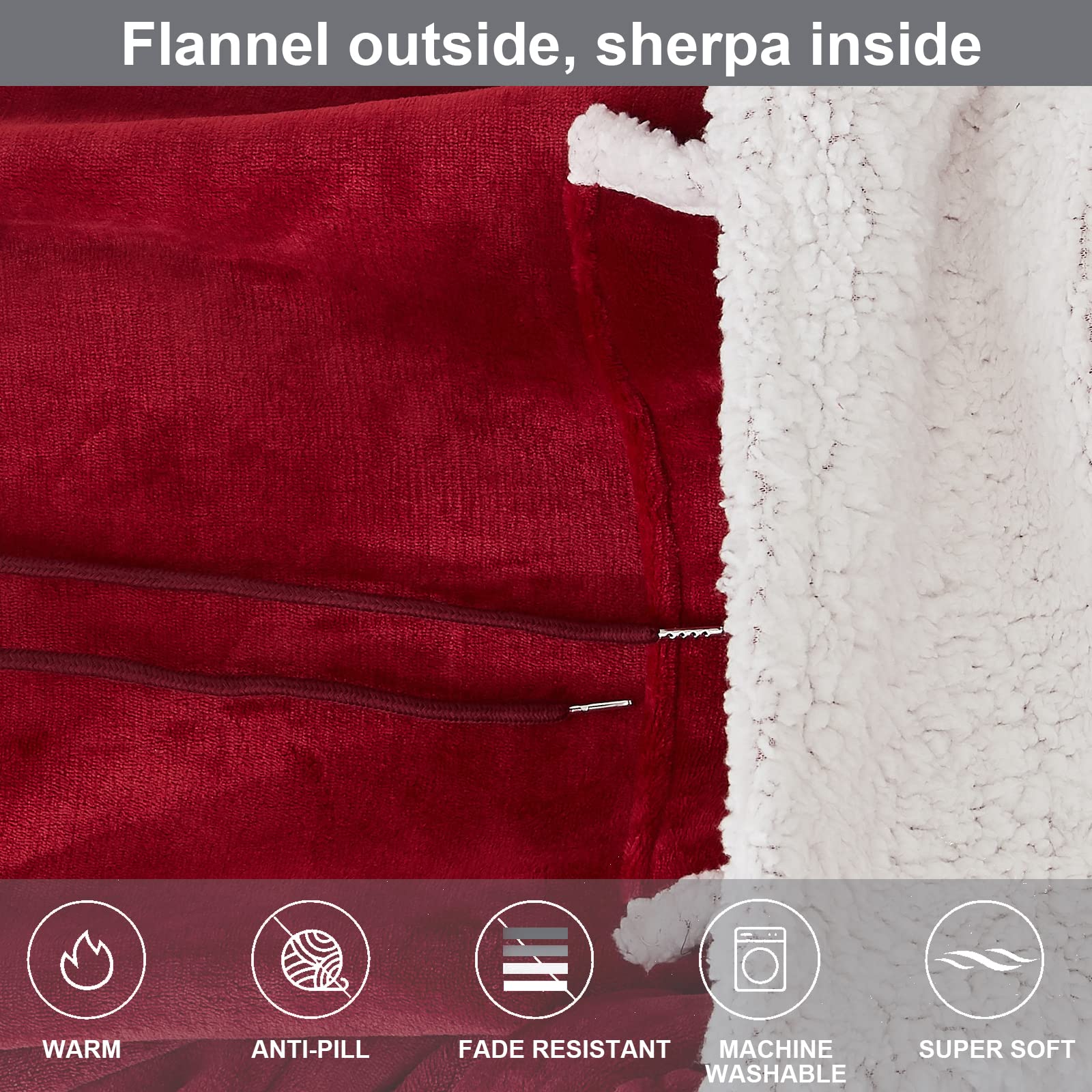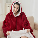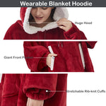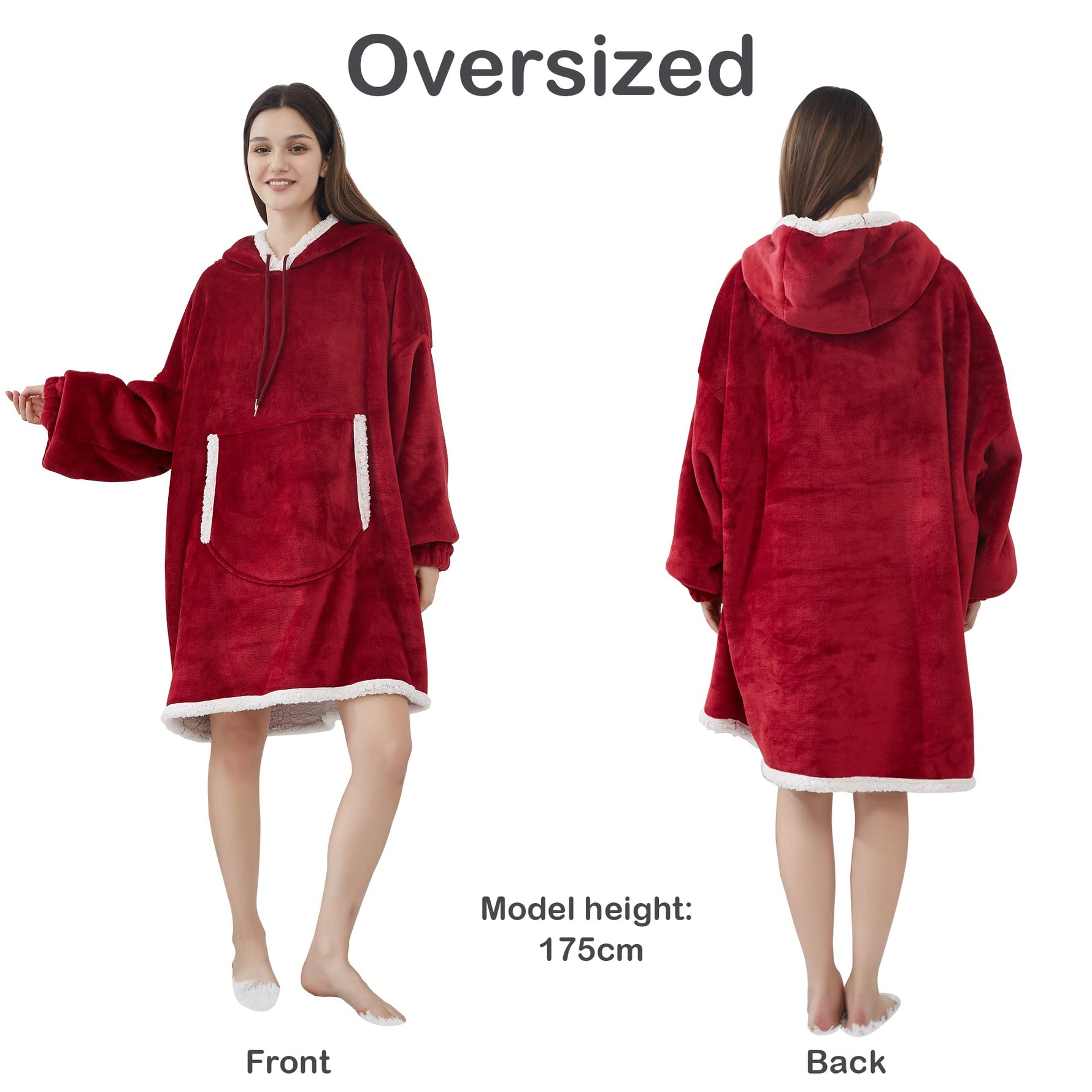 Wine Red Blanket Hoodie Oversized Sherpa Fleece Wearable Blanket for Women & Men